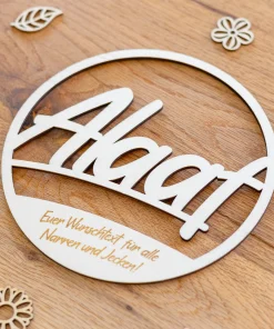 Holzschild – Willkommen bei, personalisiert mit Familienname