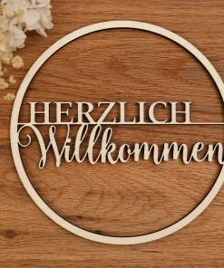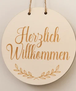 Türschild aus Holz mit Schriftzug – Herzlich Willkommen