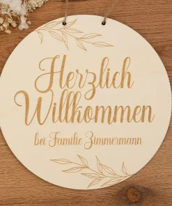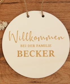 Familienschild – Herzlich Willkommen, personalisiert mit Namen