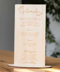 Personalisierte Menükarte für Hochzeiten aus Holz