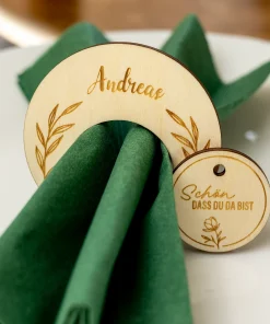 Personalisierte Serviettenringe aus Holz mit Anhänger