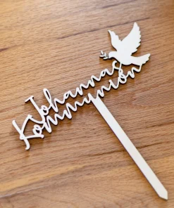 Personalisierter Caketopper zur Kommunion mit Taubenmotiv