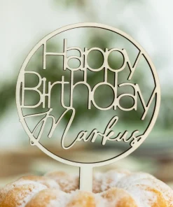 Caketopper zum Geburtstag mit „Happy Birthday“ Schriftzug und Name