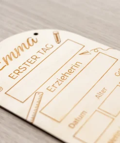Erinnerungstafel aus Holz – Erster Tag – Für Schule und Kindergarten, personalisiert mit Namen