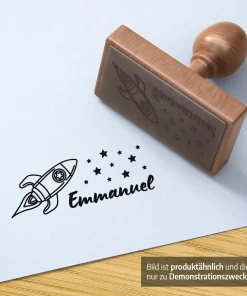 Eckiger Holzstempel für Kinder mit unterschiedlichen Motiven, personalisiert mit Name