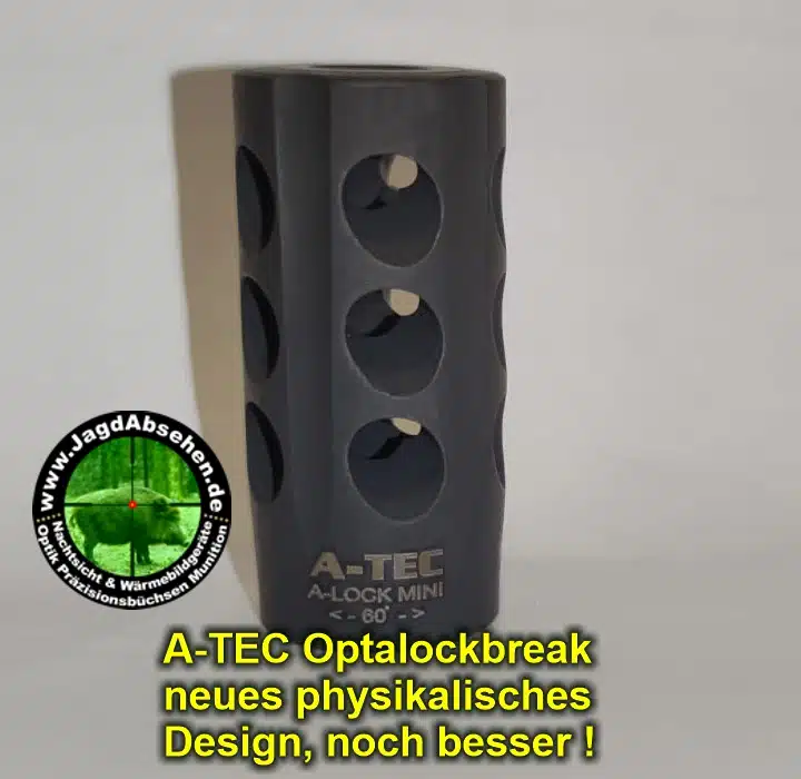 A-TEC A-Lock Mündungsbremse muzzle break – die geniale Idee: Schießen ohne Schalldämpfer (Drückjagd usw.?!?) , aber dennoch den Rückstoß dämpfen? Nehmen Sie die A-Lock Mündungsbremse original von A-TEC für das A-Lock Schnellmontage A-Lock-Mini-Adapter-System – Für maximale Flexibilität! Dieser Rückstoßkompensator passt für alle Kaliber bis .375 für alle Ihre Büchsen, die das A-Lock-System schon haben!
