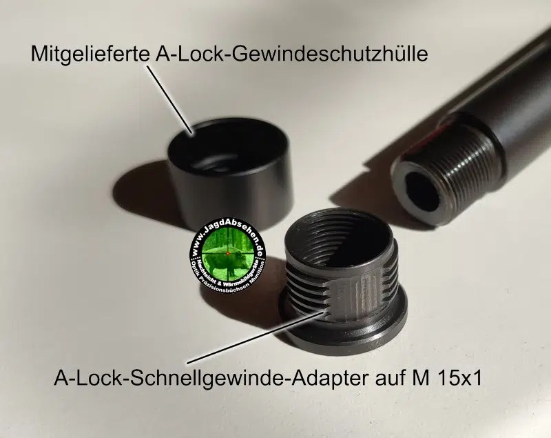 A-TEC A-Lock Schalldämpfer Schnellmontage A-TEC OPTALOCK A-Lock-Mini-Adapter-System – Für maximale Flexibilität! Damit passt die Büchse trotz Schalldämpfer in das alte Futteral und ohne Bedenken in den Waffenschrank. Im Waffenschrank sollte IMMER der Schalldämpfer von der Büchse entfernt werden, da sonst Rückstände im Schalldämpfer abspleißen können und in den Lauf und Patronenlager/Verschluss fallen. Oder Büchse kopfüber lagern!
