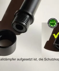 Zudem kann der Dämpfer auf verschiedenen kalibergleichen Waffen verwendet werden. Dies gilt auch bei verschiedenen Laufgewindedurchmessern.