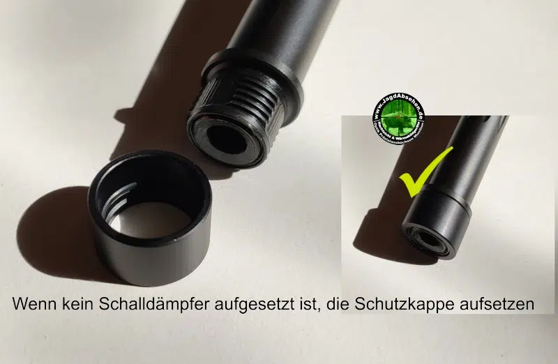 7. Schrauben Sie den Schalldämpfer einige Male auf den Lauf und wieder herunter und überprüfen Sie den Sitz sowie die Ausrichtung.