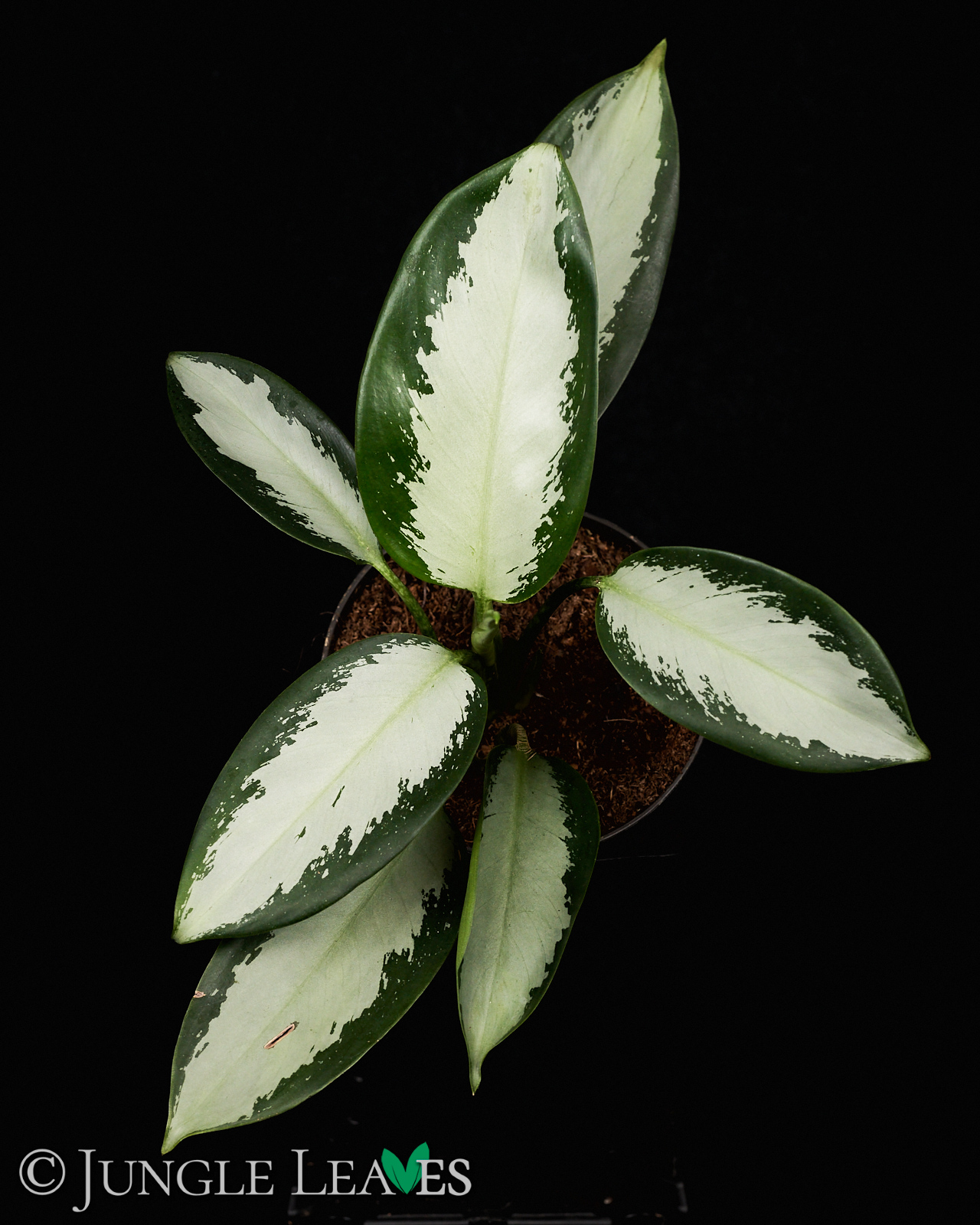 Aglaonema ‚Silver Blue‘ ist eine breitblättrige und kleine Aglaonema Zuchtform. Die Blätter sind zweifarbig, mit einem großen, silbrig-blauen Feld in der Mitte und dunkelgrünem, scharf abesetzten Rand. Die Blätter sind überrachend dick und robust. Die Oberfläche wirkt dadurch auch sehr glatt und fast künstlich. Wir versprechen euch aber, das ihr eine lebende Pflanze bekommt und keine aus Plastik 😉