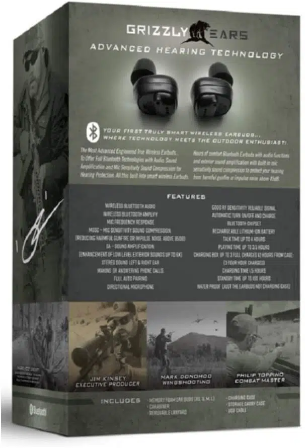 Konstruiert in den USA in Nashville und getestet von Jagd- und Schießsportgrößen in nahezu allen erdenklichen Szenarien, egal ob im behördlichen Einsatz, beim Sport oder auf der Jagd. Grizzly Ears ist der optimale Begleiter in nahezu jeder Situation. Mit nur 5 Gramm Gewicht kaum zu spüren und dank nahezu intuitiver Bedienung lässt sich problemfrei der Gehörschutz mit dem Handy koppeln oder zum Musikhören verwenden. Und sobald er nicht mehr benötigt wird, lädt der Aktivgehörschutz Grizzly Ears automatisch in der Transportbox, bereit für den nächsten Einsatz. – Gegen Verlust der kleinen Ohrstecker kann man übrigens die mitgelieferte Verbindungskordel installieren – so bleiben die kleinen Kerle hübsch beieinander und sind doch schnell griffbereit !