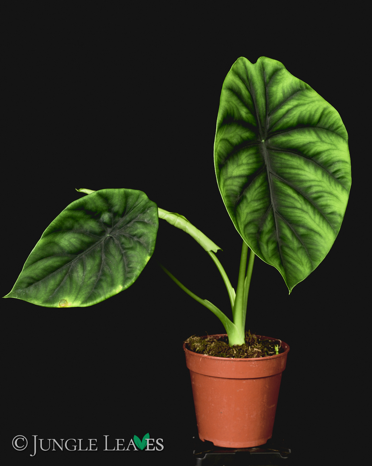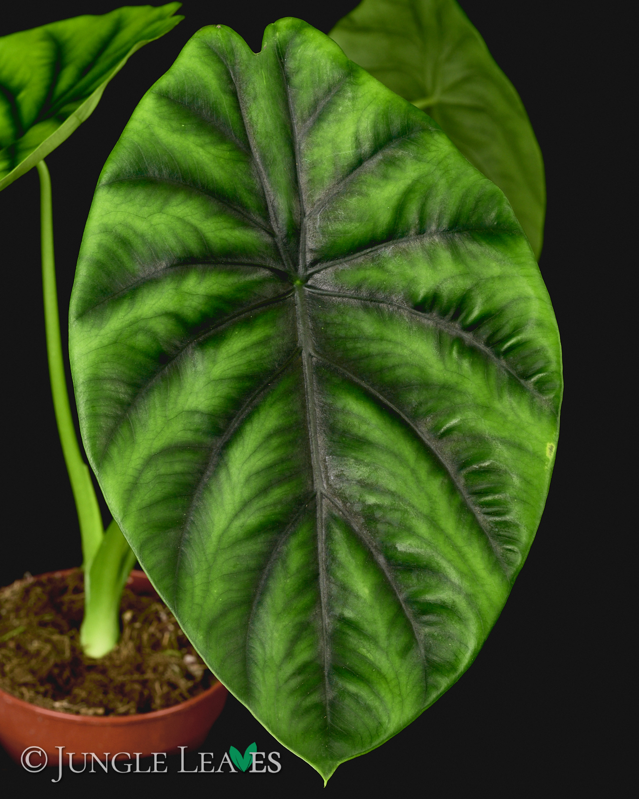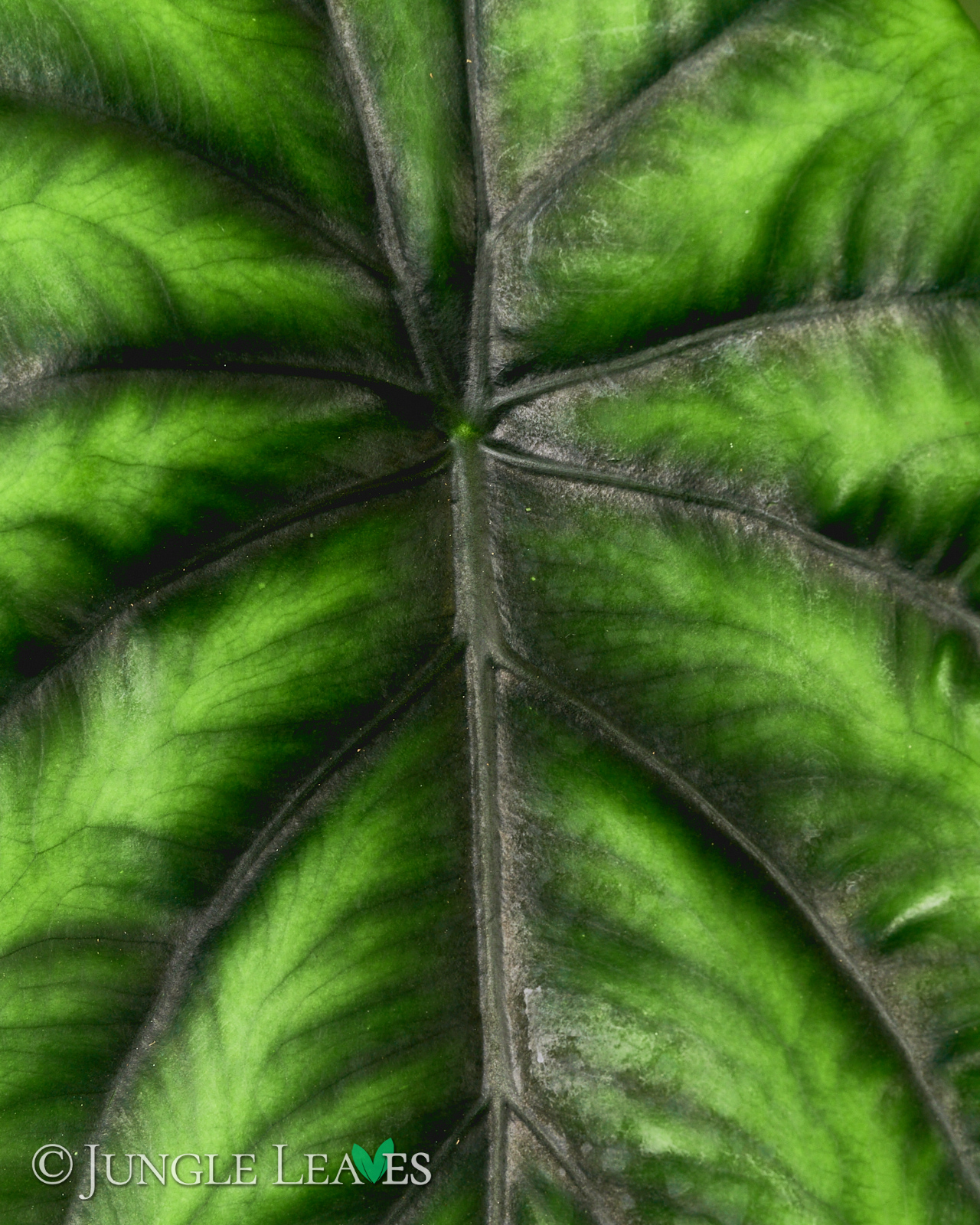Alocasia clypeolata ‚Green Shield‘ zeichnet sich durch ihre kontrastreichen Blätter aus. Die dunklen Blattaders auf dem hellgrünen Untergrund mache sie zu einem echten Hingucker. Die gewölbte Blattfläche und die eingesenkten Blattadern geben ihr zusätzlich eine ansprechende Form. Die Blätter werden bis zu 30cm groß.