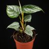 Kleine Alocasia mit harten, dunklen Blättern und hellen Blattadern. Sehr schöne Art. Pflegeleicht.