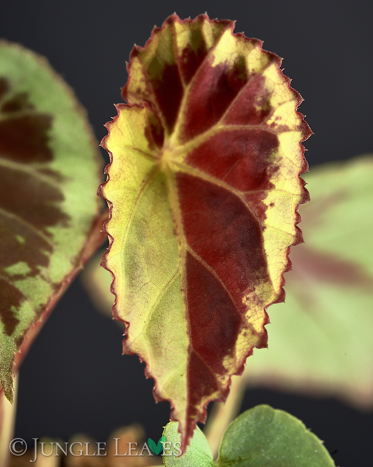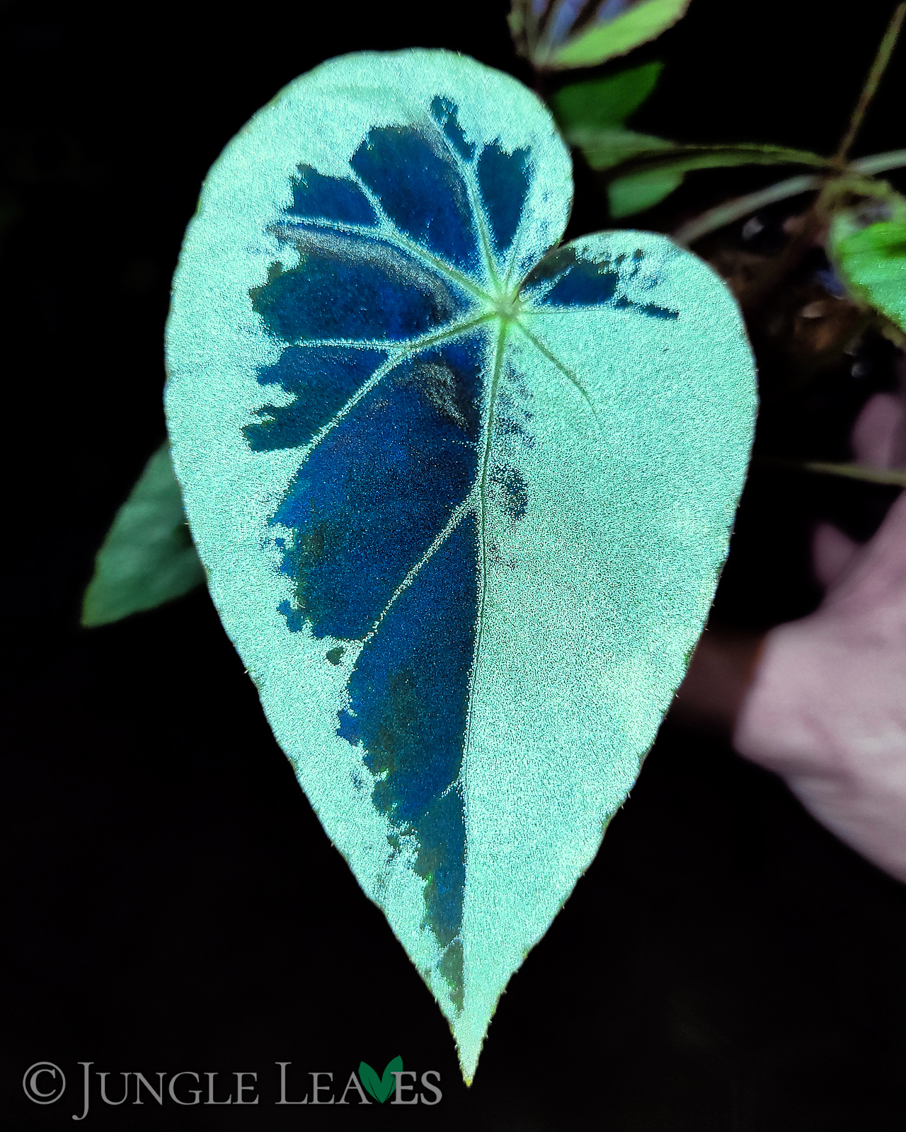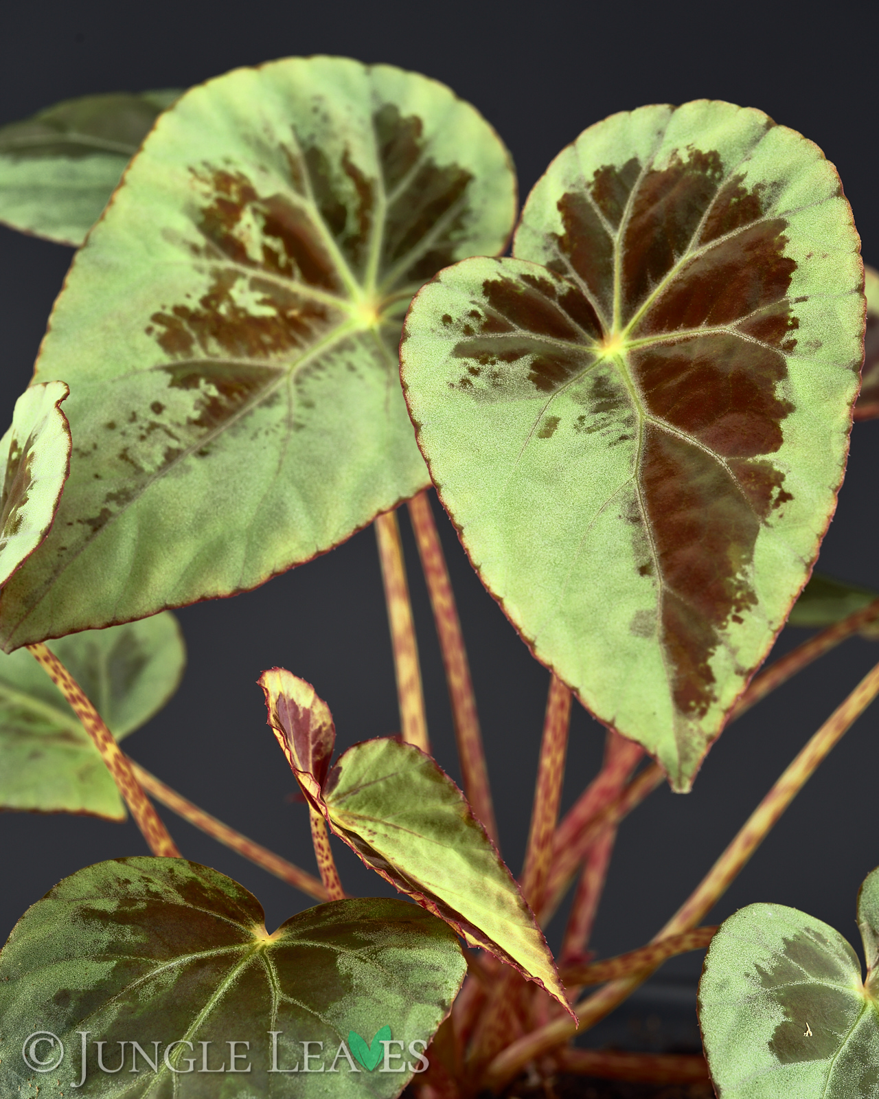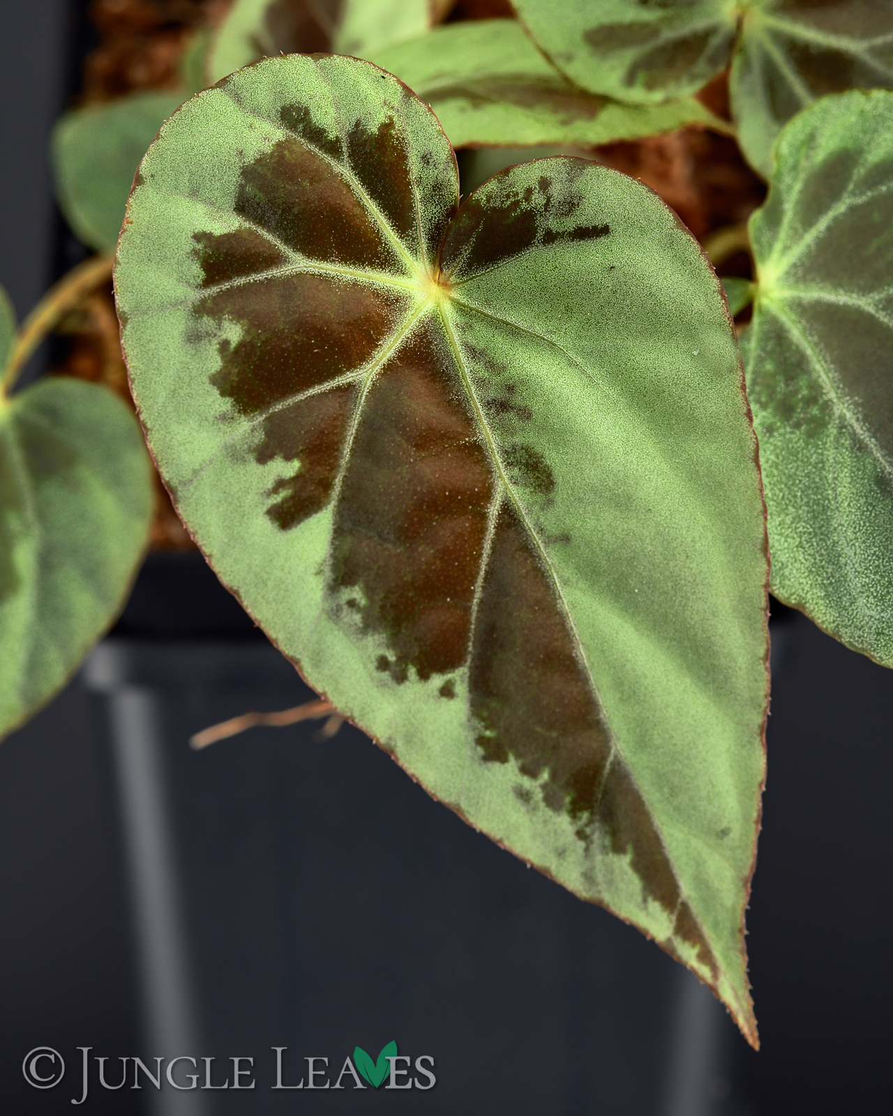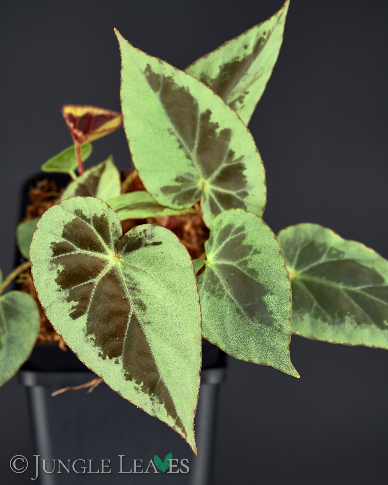 Seltene Farbform dieser eh schon seltenen Art aus dem Norden Indiens mit zur Hälfte minzgrünen, zur Hälfte dunklen Blättern. Absoluter Blickfang. Eine der schönsten Begonien überhaupt.