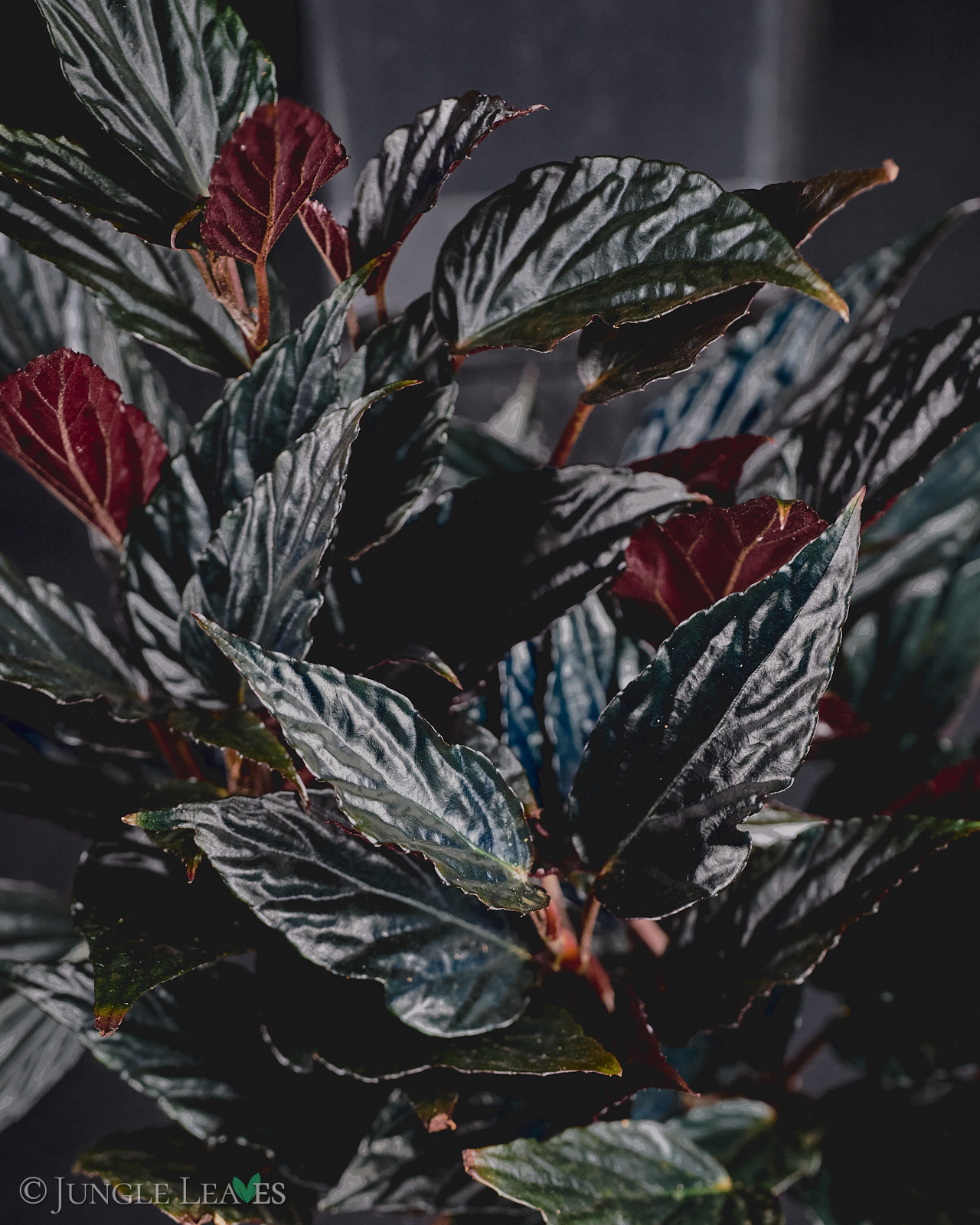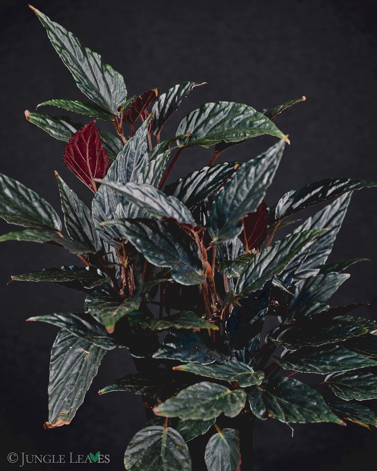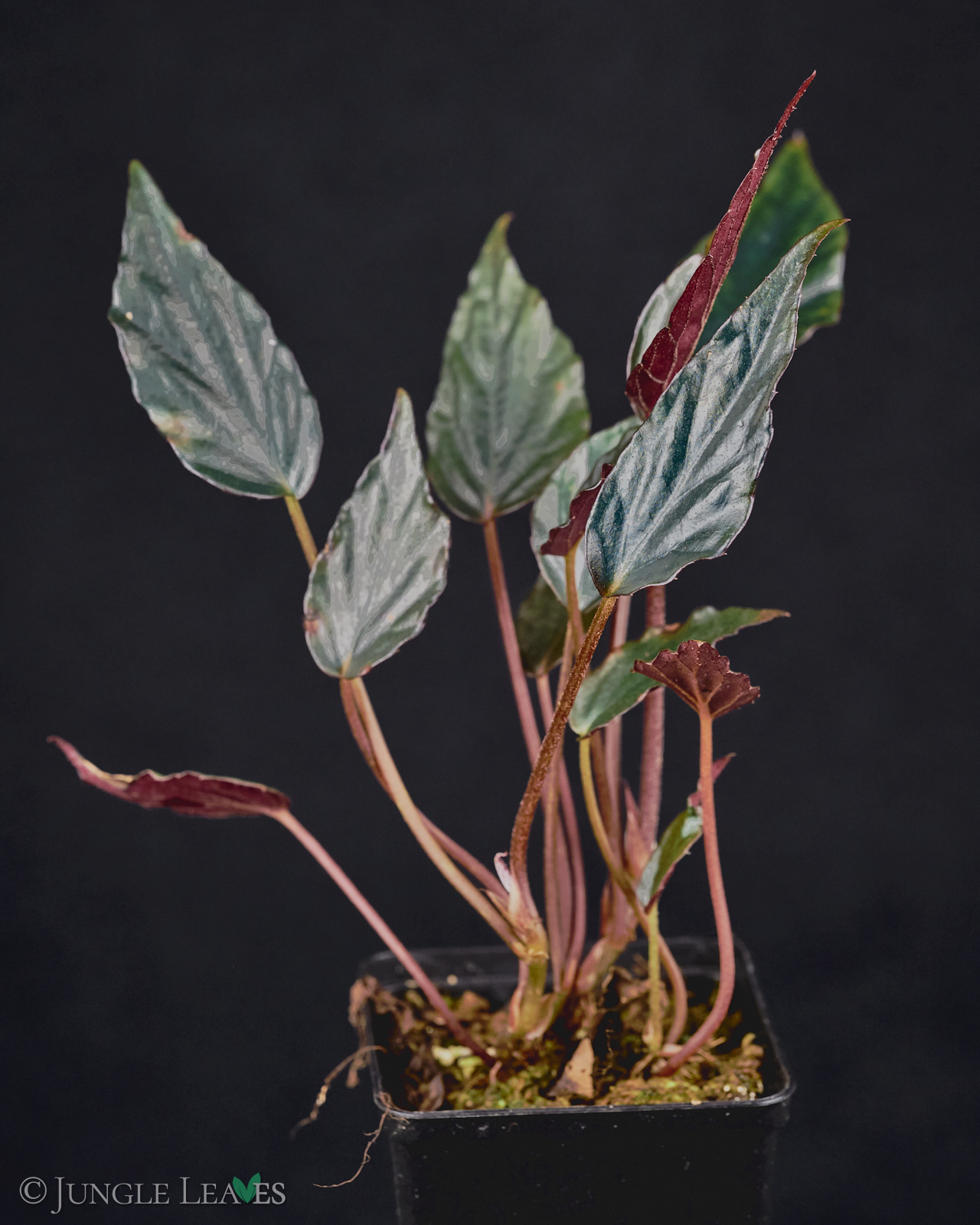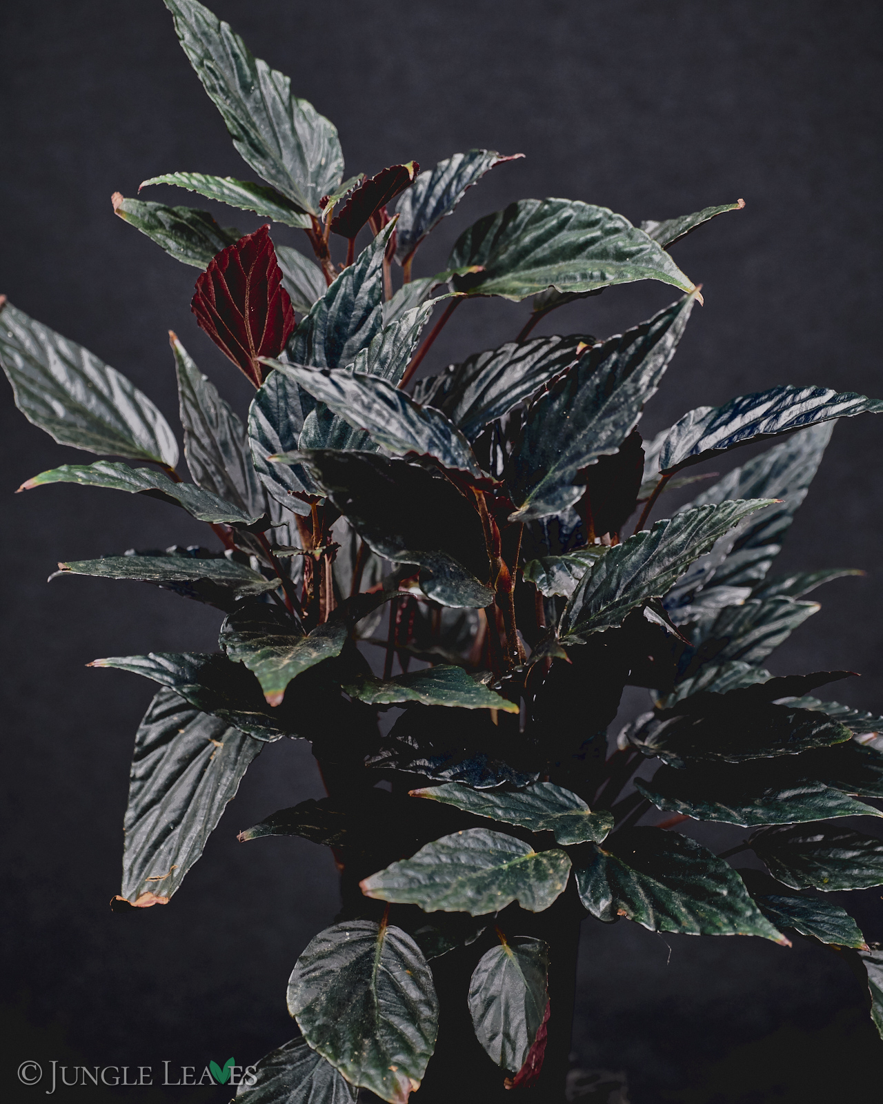 - Besonderheiten: Eine besonders schöne Form von Begonia hatacoa mit fast schwarzen Blättern und starker Irideszenz.