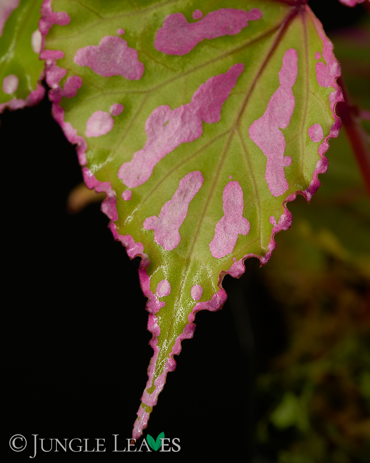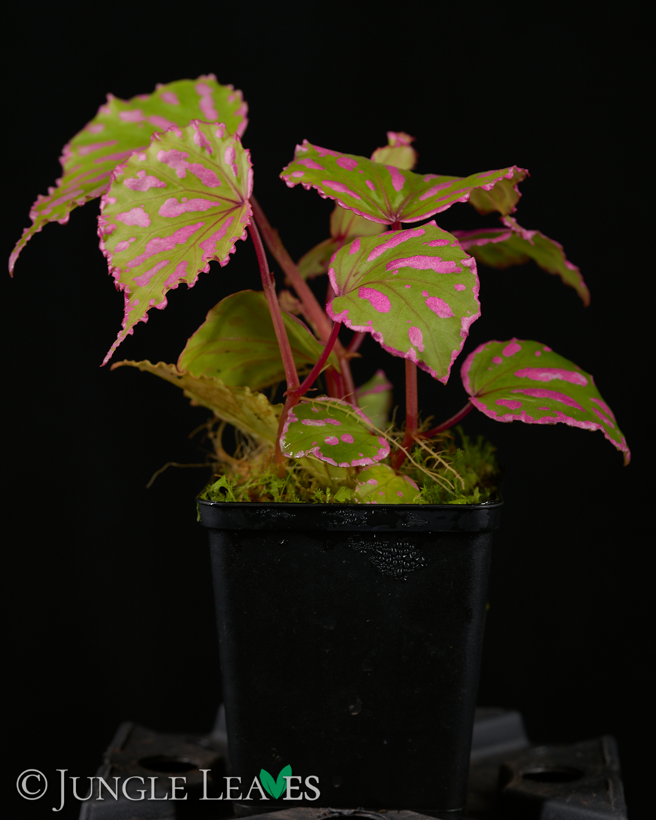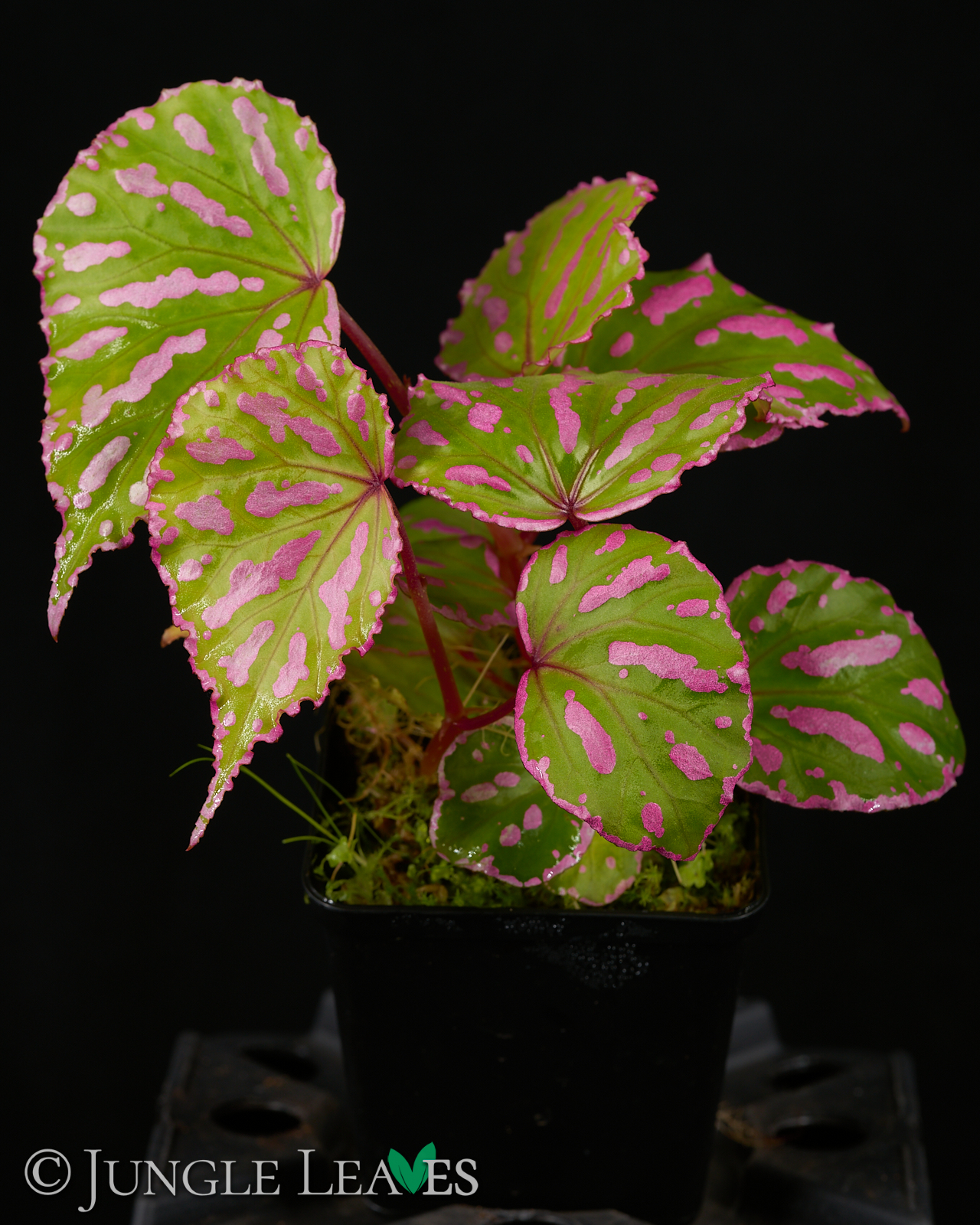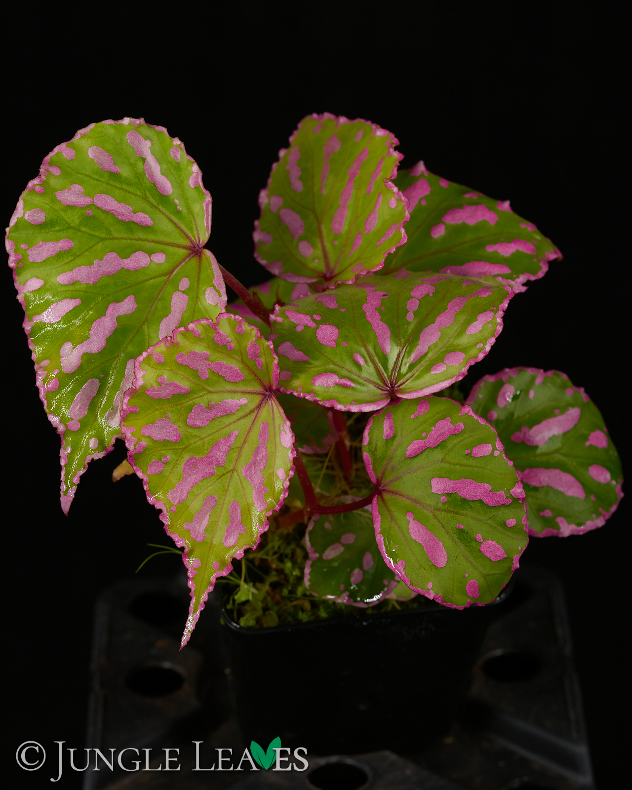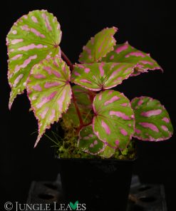- Besonderheiten: Kleine Stammbegonie mit wunderschön hellgrün und pink gesprenkelten Blättern.