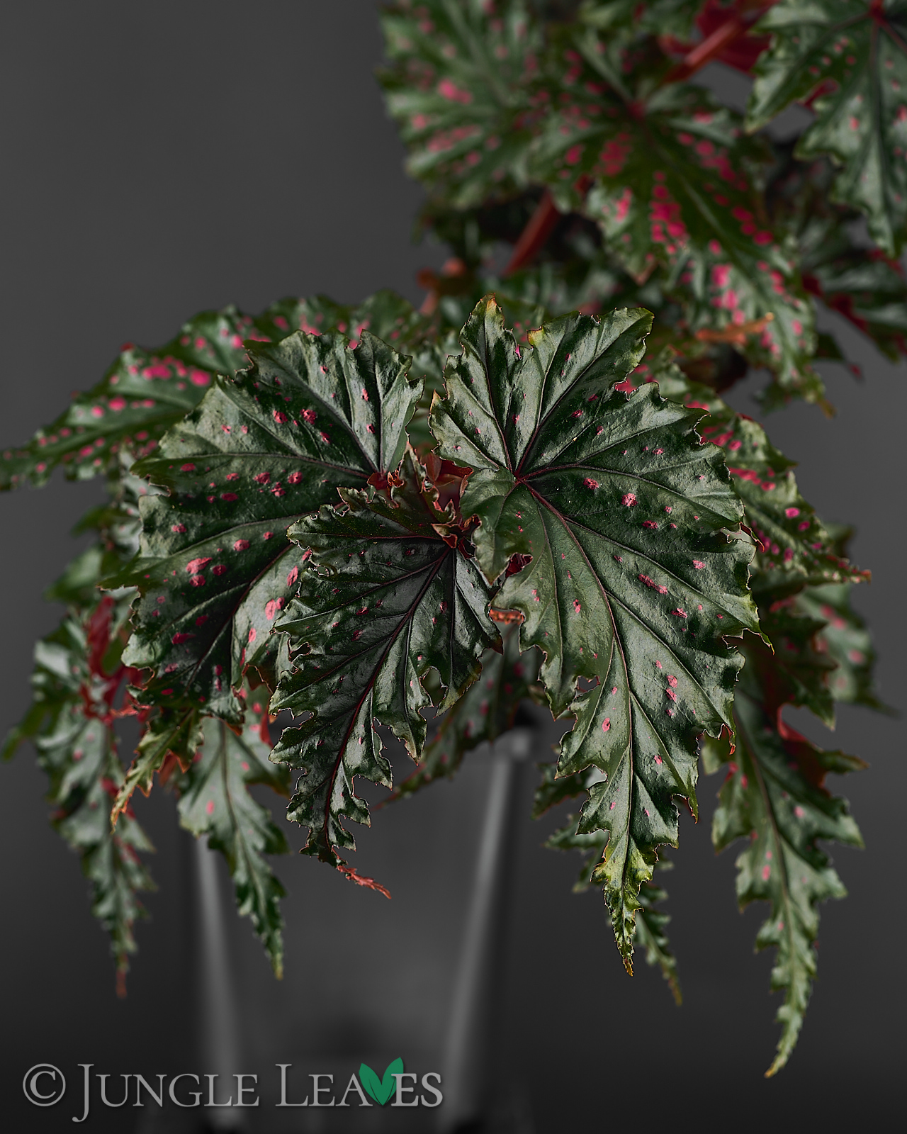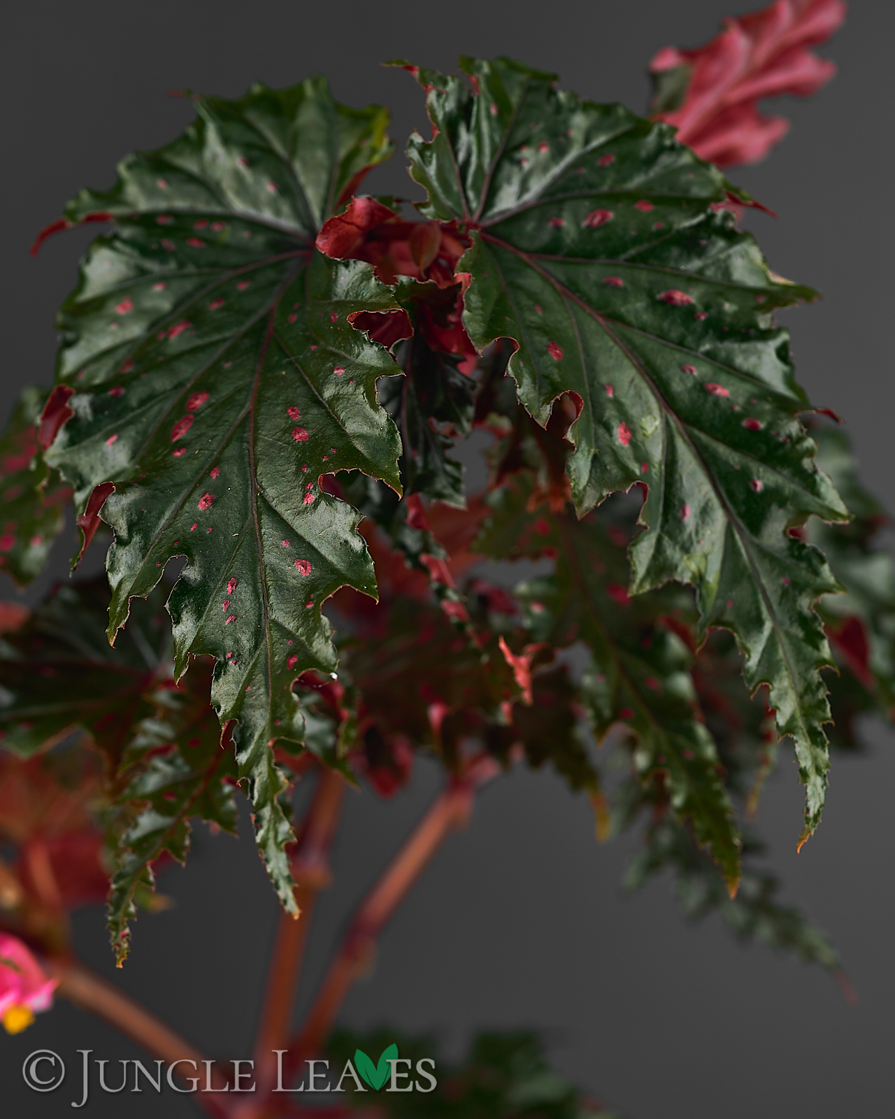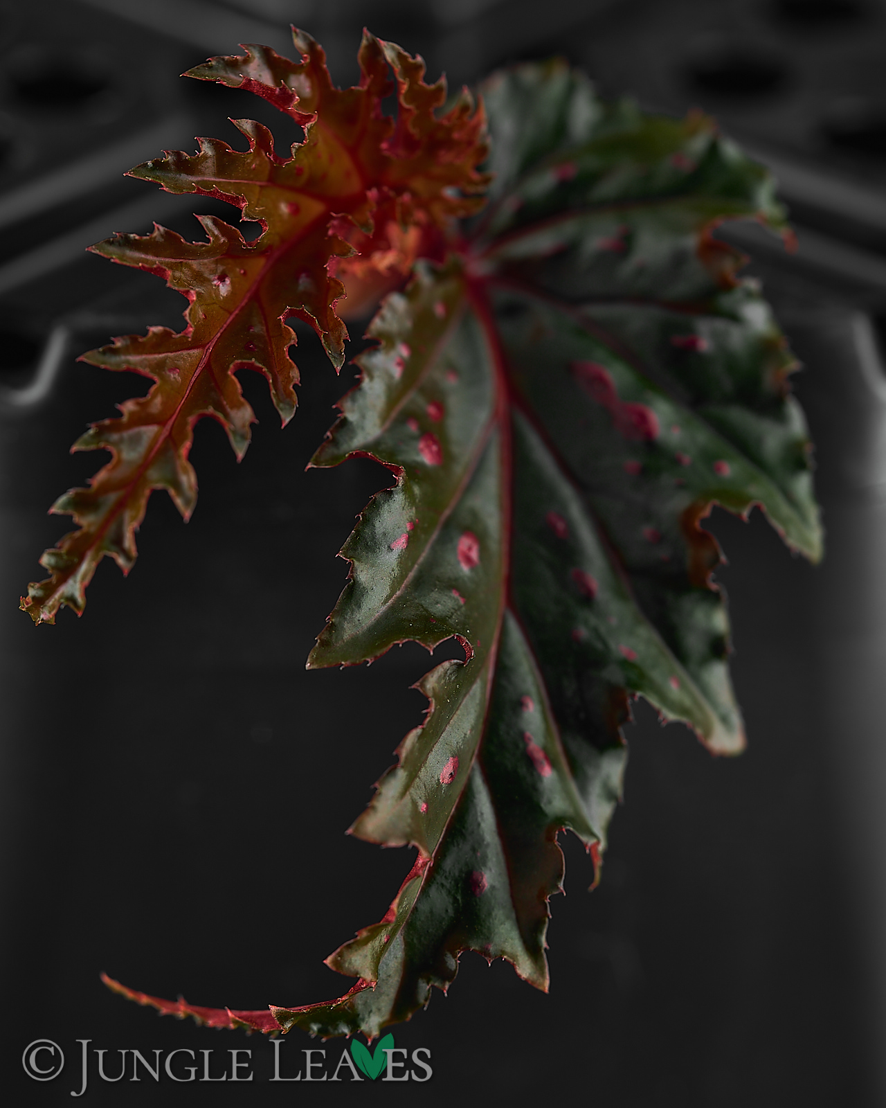 Begonia serratipetala ist eine kleine, stammbildende („cane type“) Begonie aus Papua-Neuguinea. Sie wird etwa 60 cm hoch und hat dunkelgrüne Blätter mit gesägten Rändern und knallig pinken Punkten. Die dünnen Stämme sind rot und können mit etwas Unterstüzung auch noch höher werden, ohne Hilfe biegen sie sich aber ab einer Höhe von etwa 50cm unter ihrem eigenen Gewicht zur Seite. Sie gehört zur Sektion Petermannia und blüht mit kleinen, rosanen Blüten. Sie wächst im schattigen Unterholz der Regenwälder an feuchten Stellen.