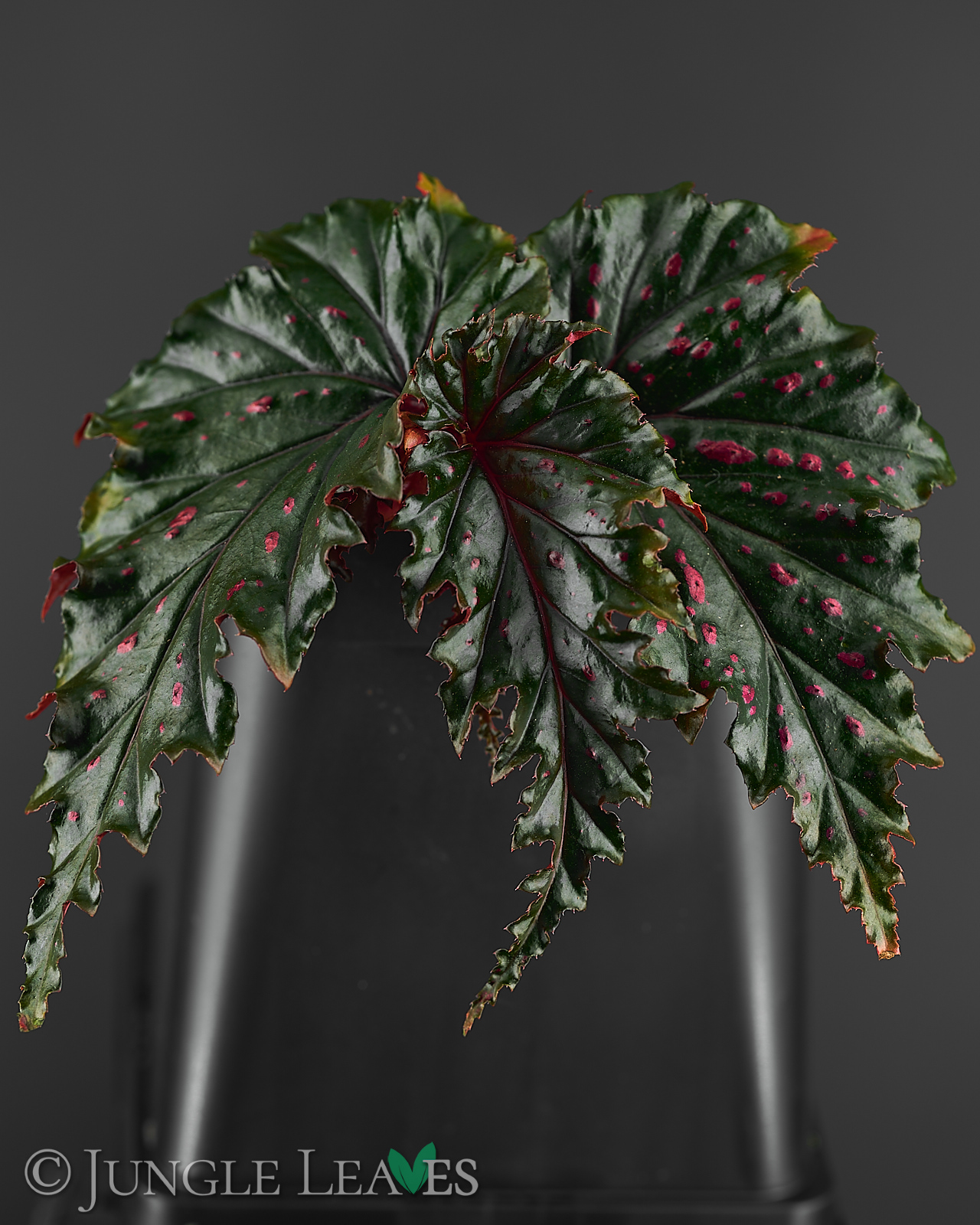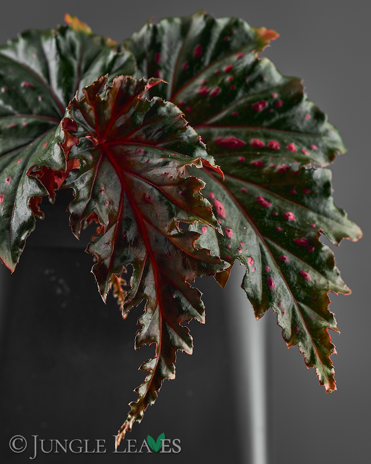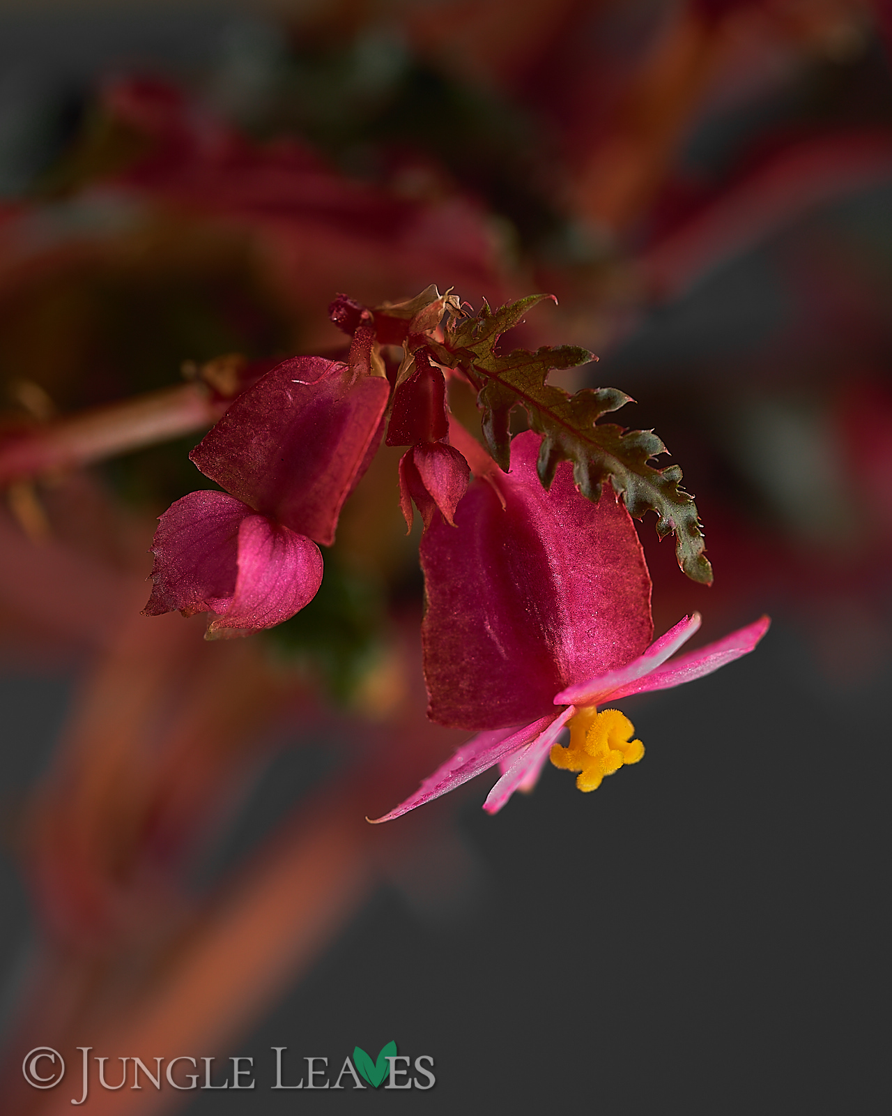 Begonia serratipetala ist eine kleine, stammbildende („cane type“) Begonie aus Papua-Neuguinea. Sie wird etwa 60 cm hoch und hat dunkelgrüne Blätter mit gesägten Rändern und knallig pinken Punkten. Die dünnen Stämme sind rot und können mit etwas Unterstüzung auch noch höher werden, ohne Hilfe biegen sie sich aber ab einer Höhe von etwa 50cm unter ihrem eigenen Gewicht zur Seite. Sie gehört zur Sektion Petermannia und blüht mit kleinen, rosanen Blüten. Sie wächst im schattigen Unterholz der Regenwälder an feuchten Stellen.