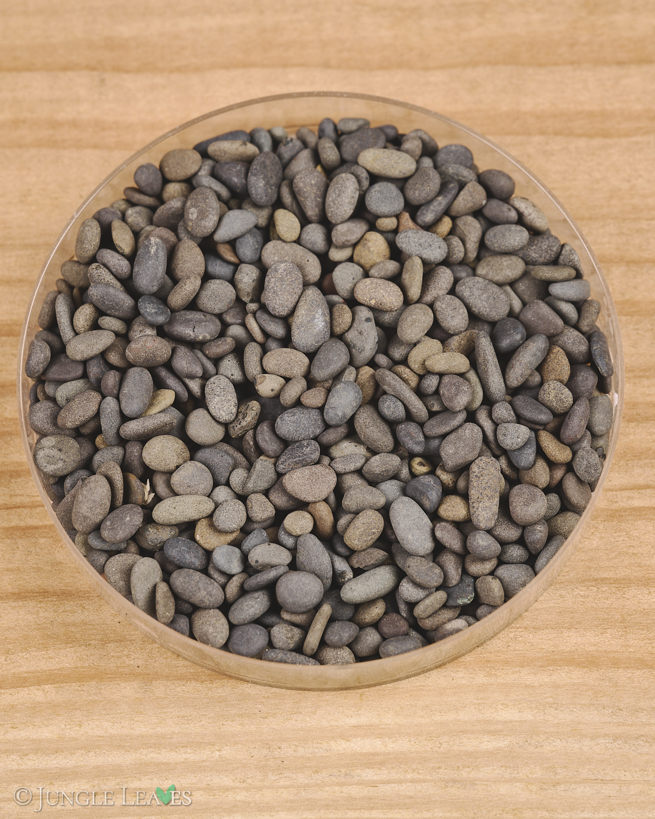 Schwarzer Basaltkies mit abgerundeten Kieseln. Sehr schön als Deko für den Vordergrund von Terrarien, Aquarien, o.ä.