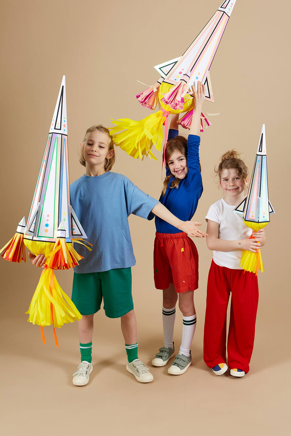 3. easy-peasy Kartonteile im Set mit je 3 Flügeln und 3 Raketenantrieben