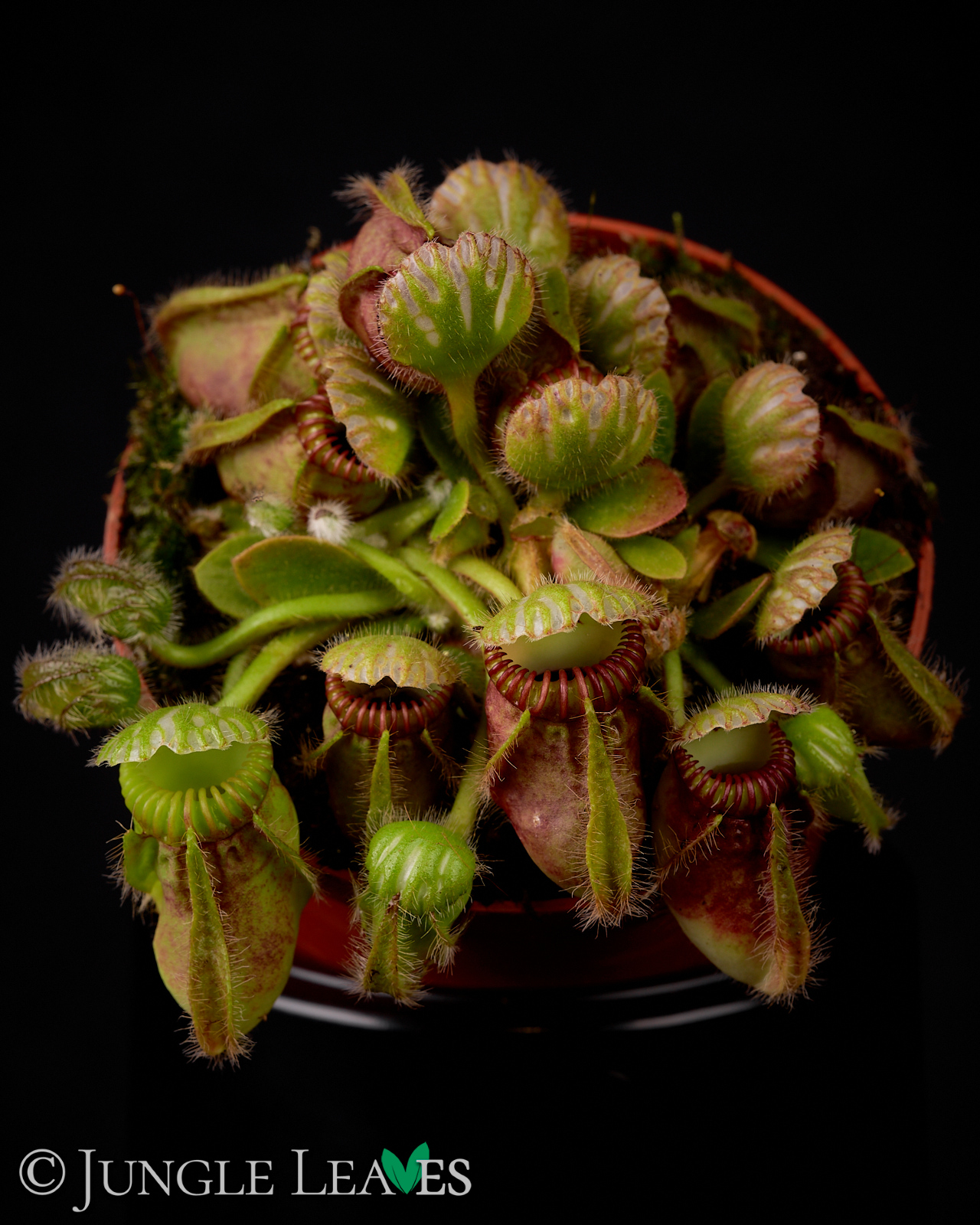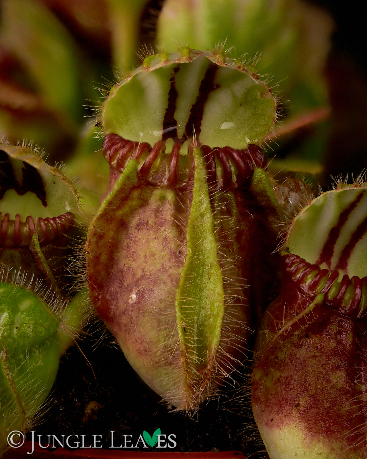 Bei wenig Licht bildet der Zwergkrug auch normale, spatel- bis eiförmige Laubblätter aus. Er hat ein unterirdisches Rhizom mit dem er die gelegentlichen Brände in seinem Habitat überstehen kann.