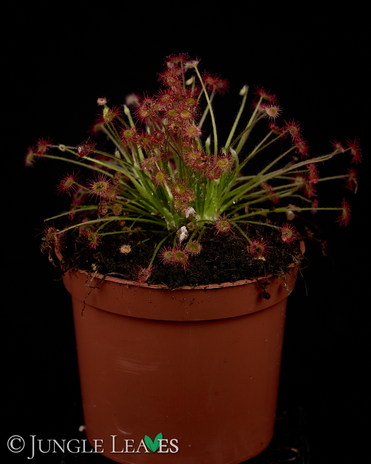 Drosera paradoxa gilt als die am einfachsten zu pflegende Art aller Petiolaris Komplex Sonnentaue und ist deshalb ein guter Einstieg in diese schöne Gruppe. Drosera paradoxa erreicht einen Durchmesser von etwa 10cm, bleibt meistens aber etwas kleiner. Die langen, haarigen Blattstiele tragen ca. 0,5 bis 1cm große, kreisrunde Blätter mit roten Fangtentakeln. Bei viel Licht wird Drosera paradoxa komplett intensiv rot und bleibt kompakter im Wachstum. Alte Pflanzen können einen bis zu 30cm hohen Stamm ausbilden.