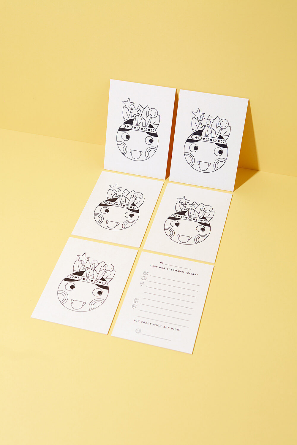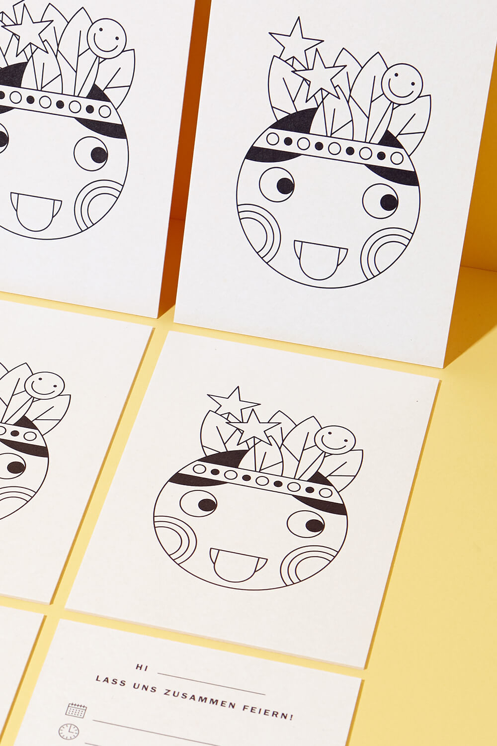 Unsere DIN A6 (105 x 149 mm) großen Einladungskartensets für Kindergeburtstage und allerlei andere Feste drucken wir auf exklusiven cremefarbenen 580 g/m² starken Karton.