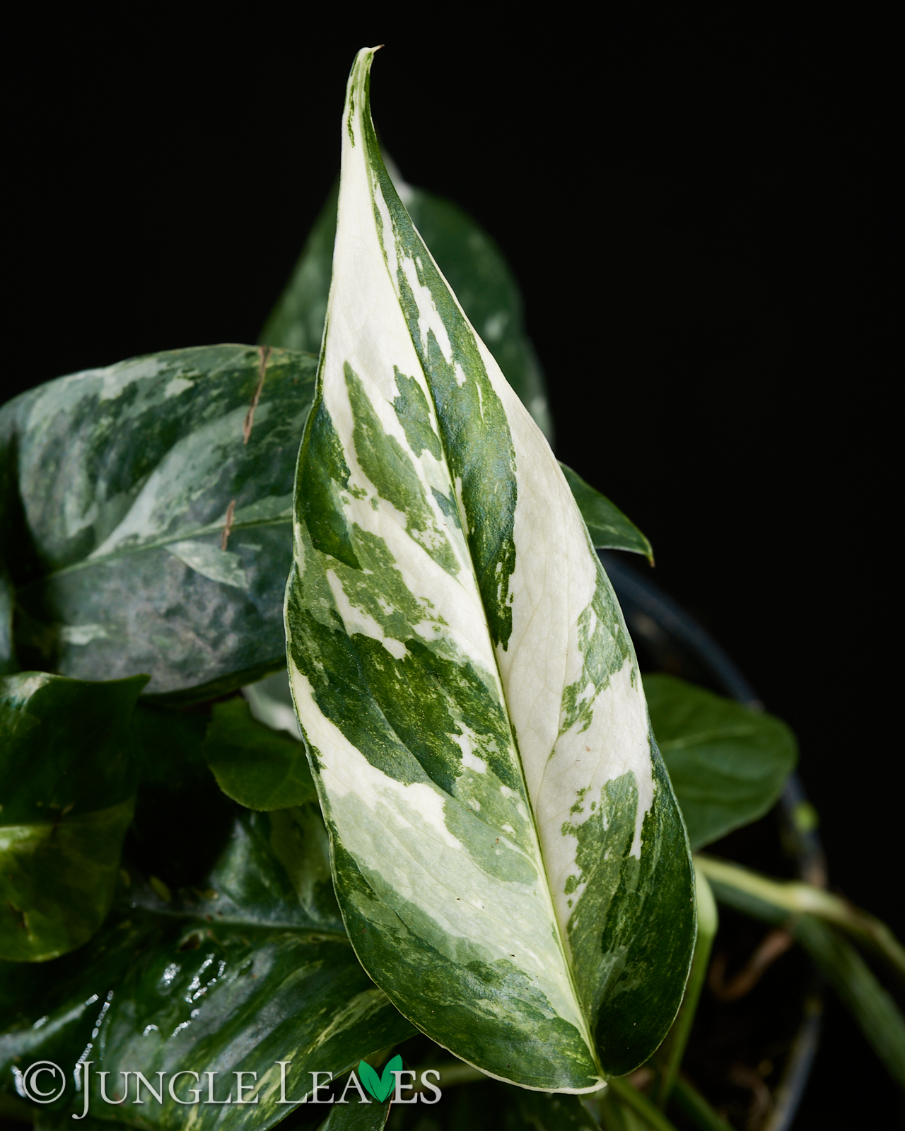 Von ihr gibt es viele Zuchtformen. Diese Form ist rein weiß panaschiert und bringt immer wieder sehr großflächig weiß panaschierte Flächen auf den Blättern hervor. Wunderschön!