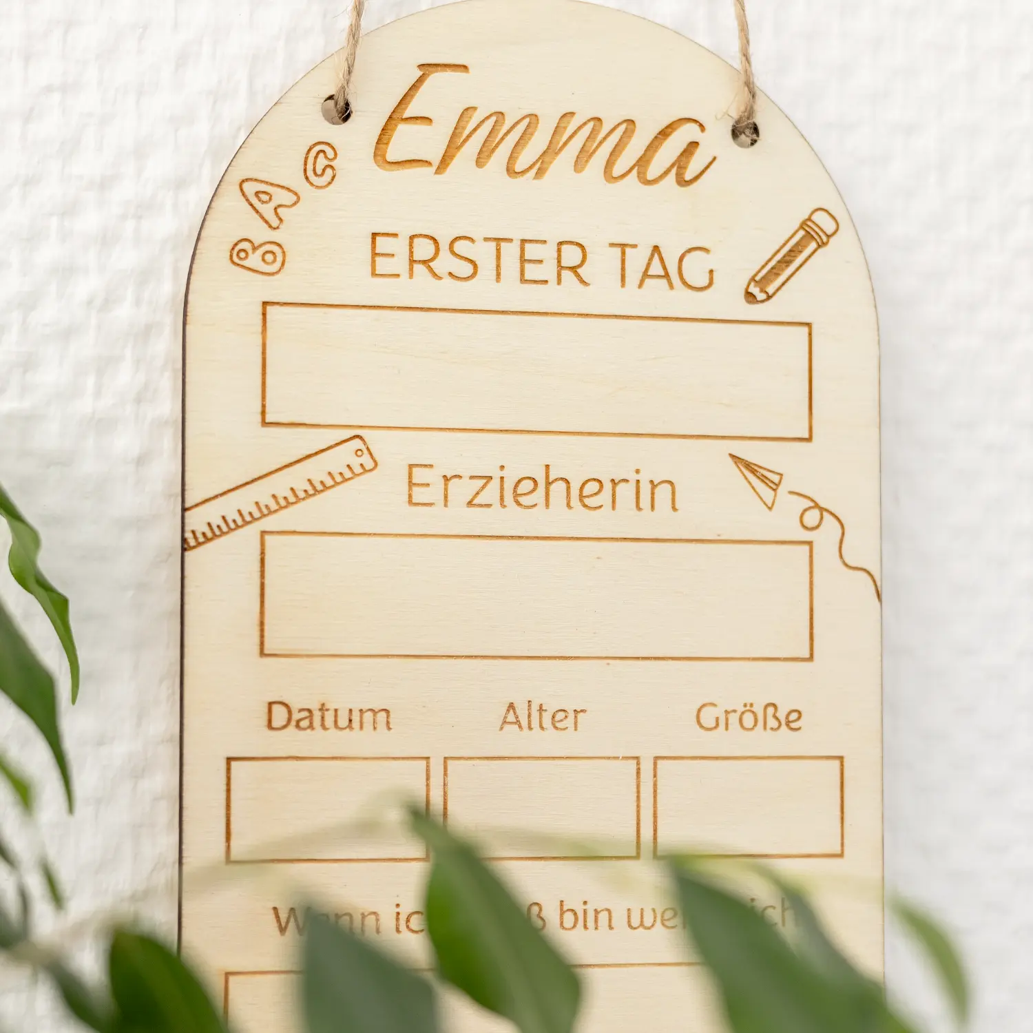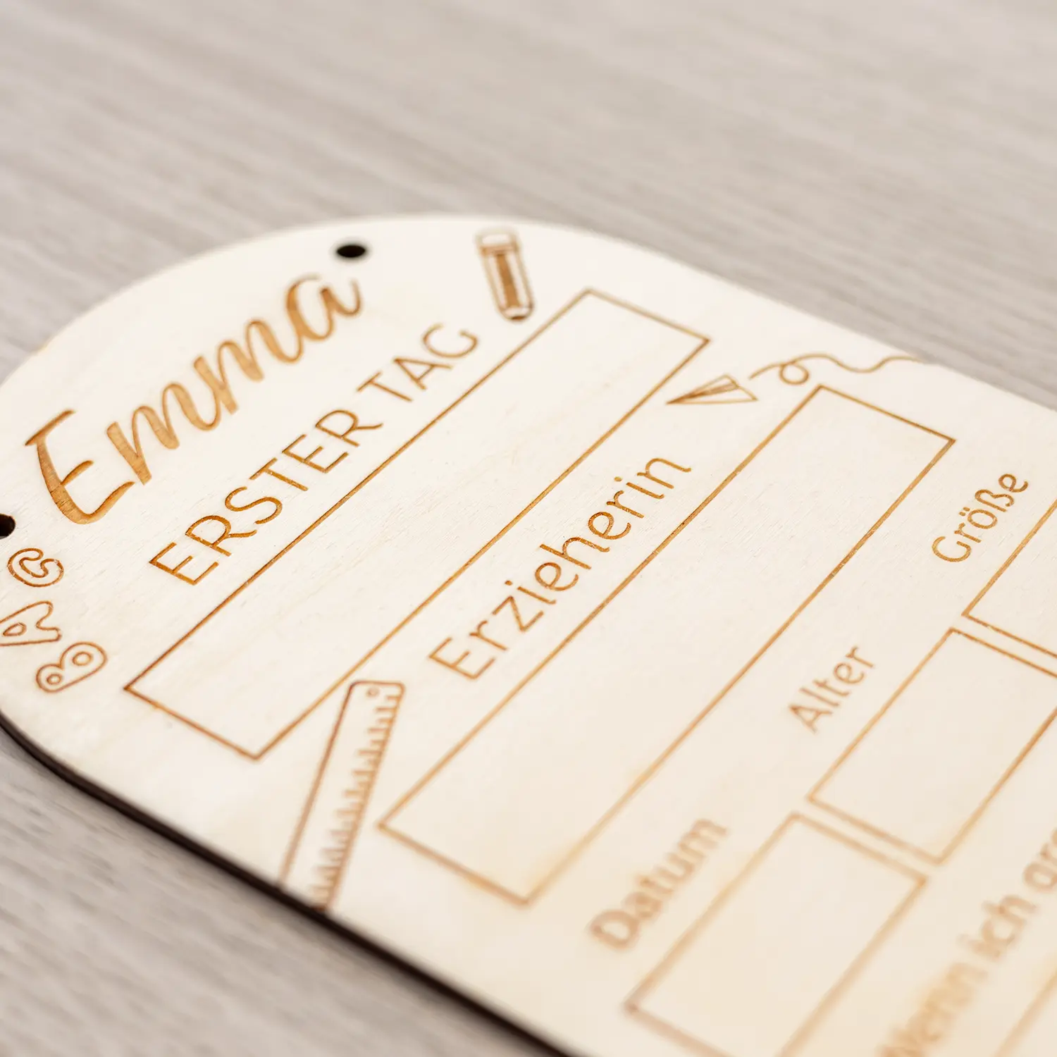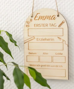 Eine ganz persönliche Erinnerungstafel. Es ist der erste Tag für euer Kind an der Schule oder im Kindergarten, zwei wichtige Meilensteine im Leben eures Kindes und diesen hält man auch sehr gerne auf Bildern fest oder behält Erinnerungsstücke an diese beiden besonderen Tage. Mit unseren personalisierten Erinnerungstafeln aus Holz habt ihr die Möglichkeit, diesen besonderen Tag sowie bestimmte Informationen eures Kindes gerade an diesem Tag auf ewig festzuhalten.