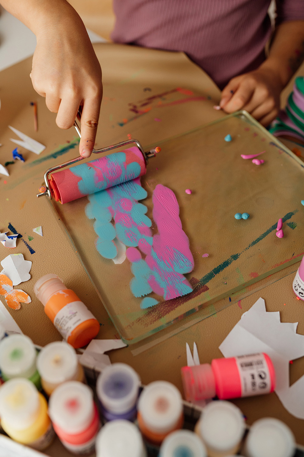 Farbwalzen kommen eigentlich beim Linoldruck zum Einsatz, wir lieben sie allerdings auch als Werkzeug zum kreativen Malen mit kleinen Kreativköpfen.