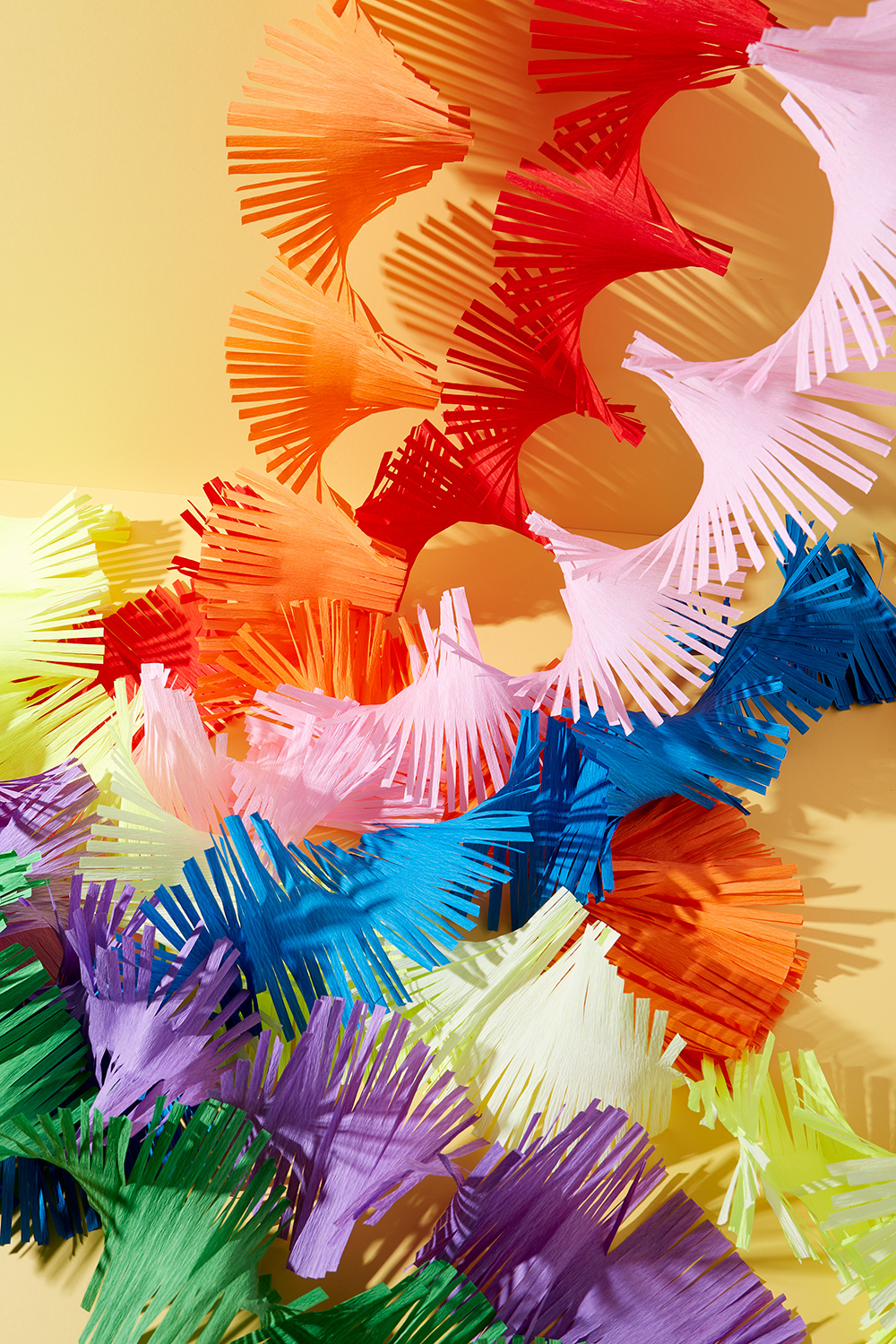 Du möchtest schnell und einfach bunte Partystimmung in den Raum zaubern? Mit diesen fransigen Krepp-Girlanden ist das ein Kinderspiel.