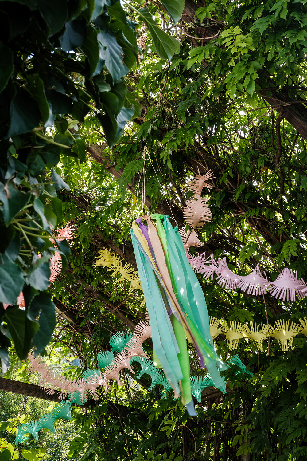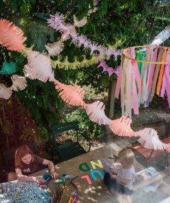 Rolle die Bahnen aus, zwirble sie und hänge sie über den Partytisch oder quer durch den Raum. TADAA! Ruckzuck erstrahlt die volle Papierpracht und wird dich und deine Gäste staunen lassen.
