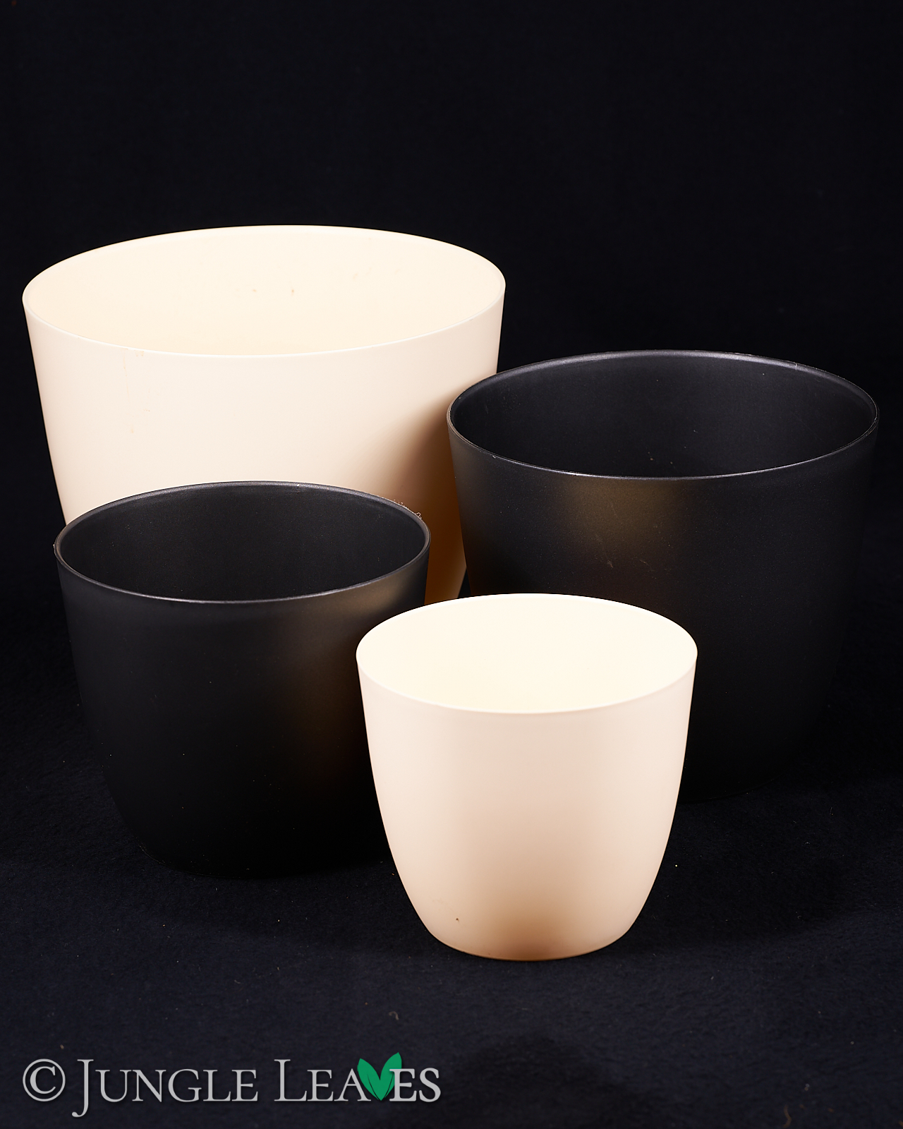 GELI Pure Übertopf in anthrazit oder cremefarbend.