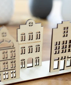 Dieses liebevoll gestaltete Set besteht aus fünf dekorativen Grachtenhäusern, die die berühmte Architektur der niederländischen Häuser nachbilden. Mitgeliefert wird ein Standfuß, um alle 5 Häuser auch frei aufstellen zu können. Grachtenhäuser haben besonders als weihnachtliche Dekoration Berühmtheit erlangt.