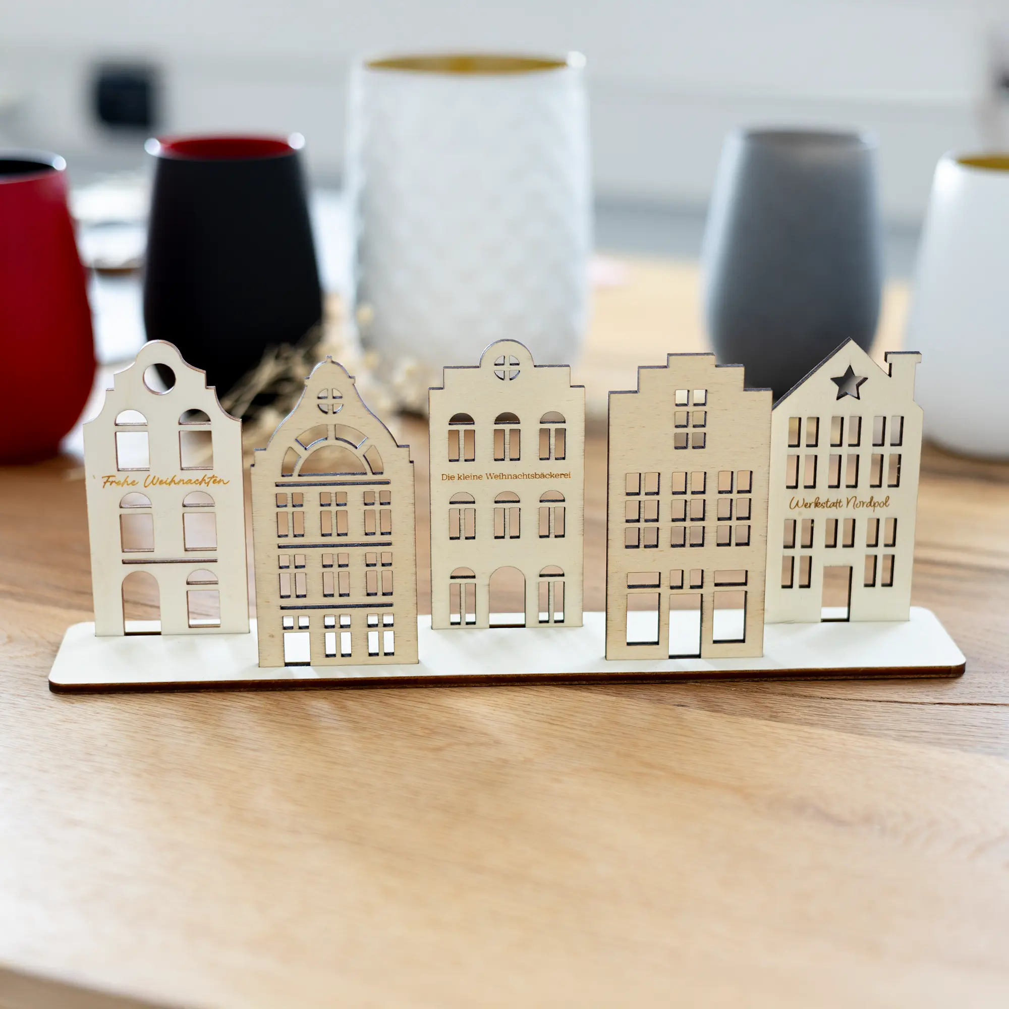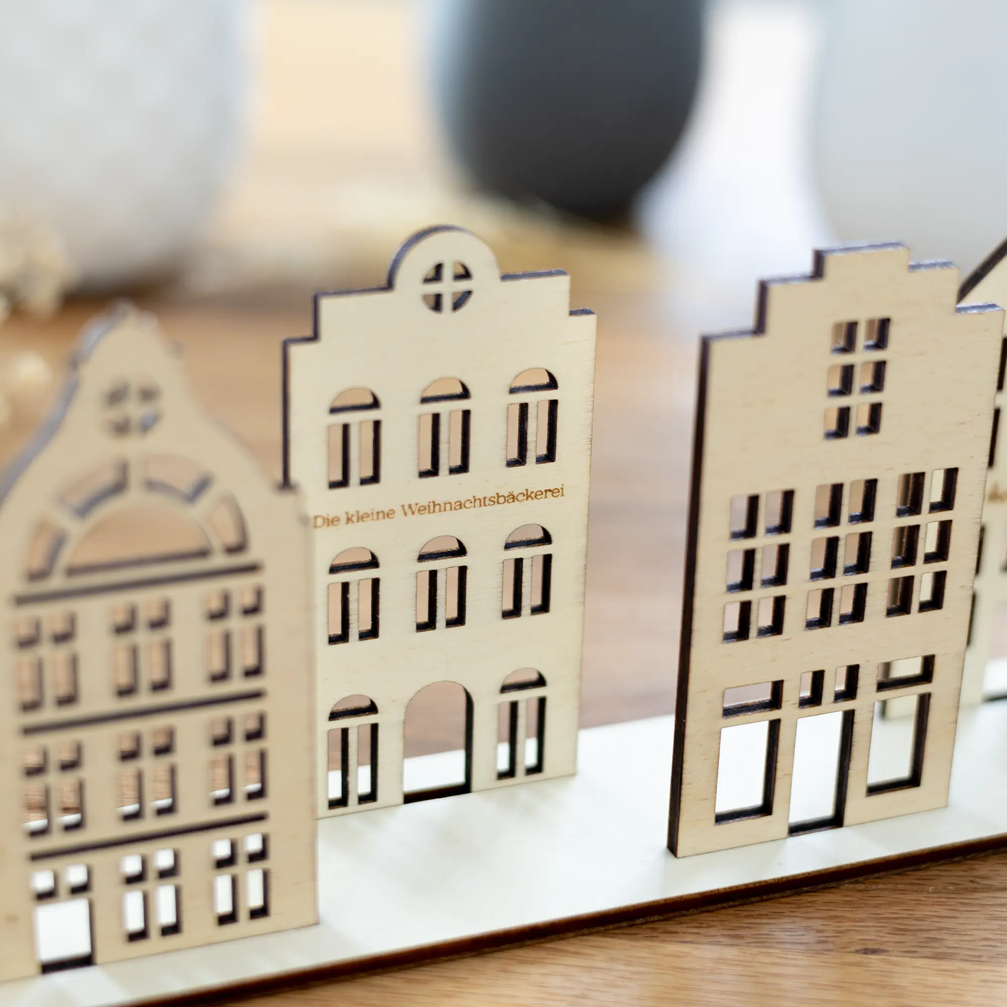 Entdeckt unser weihnachtliches Grachtenhäuser Set aus Holz – die perfekte Ergänzung für Eure Weihnachtsdekoration!