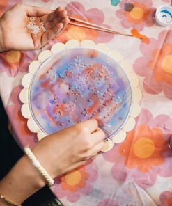 Die Farben sind säurefrei und wasserbasiert und können so einfach mit einem feuchten Tuch wieder vom Stempel entfernt werden.