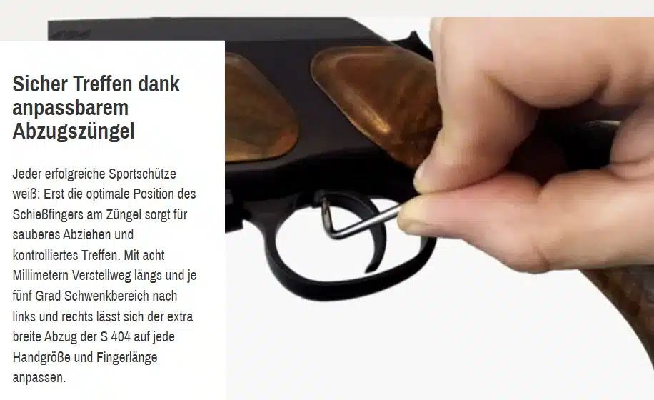 Außer dem Abzugsgewicht kann man bei diesem Wunderwerk an Büchsenbaukunst sogar die Lage des Abzugszüngels einstellen, da ein 8mm-Verstellweg längs und je 5 Grad Schwenkbereich nach links und rechts für die Individualisierung jeder Jägerin und Jäger den perfekten Kontakt zum Abzug ermöglichen. Instinktives Treffen ohne Kompromisse, die Repetierbüchse Sauer 404 schmiegt sich dem Schützen an, nicht umgekehrt.