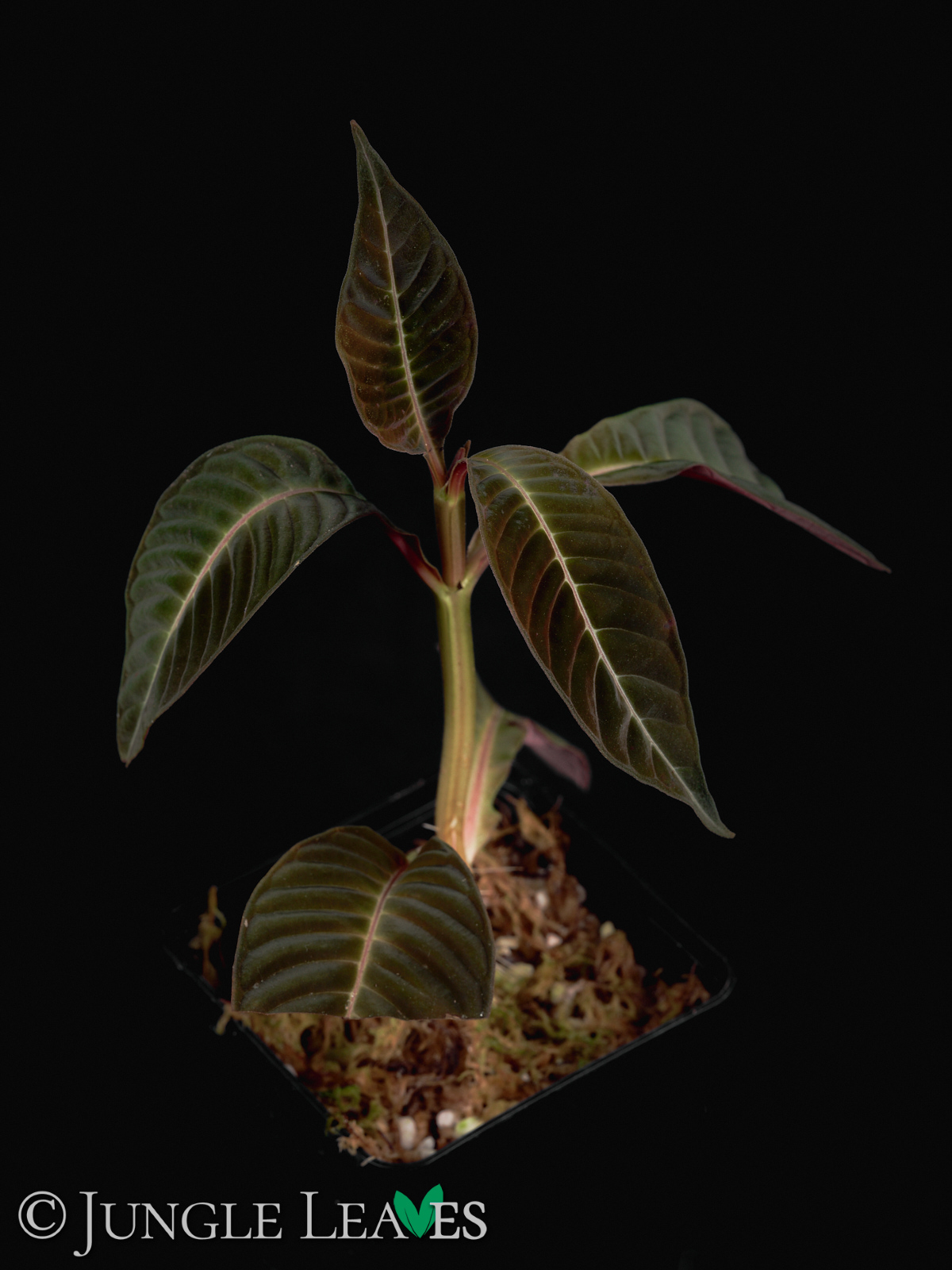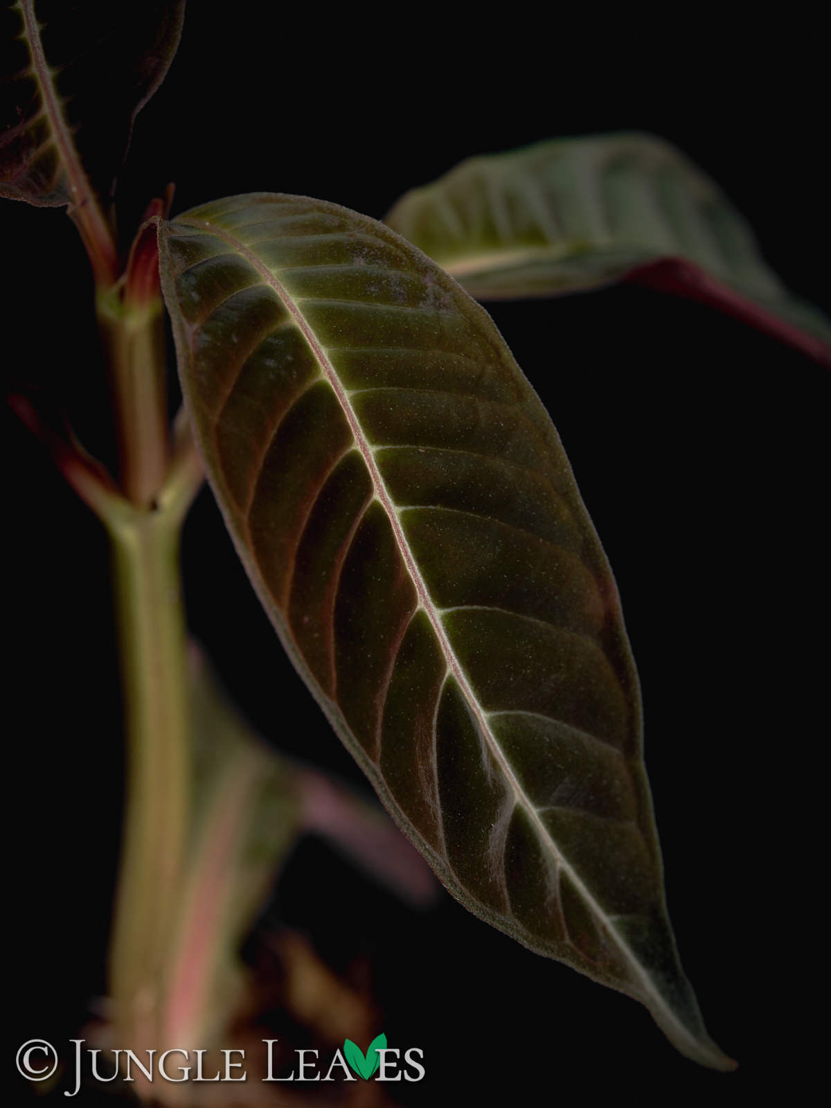Hoffmannia ghiesbreghtii gehört zur Familie der Rötegewächse (Rubiaceae) und stammt aus dem Süden von Mexiko und Zentralamerika. Sie wird maximal etwa 3 Meter hoch, bleibt meist aber kleiner. Ihre Blätter erreichen eine Länge von 50cm, in seltenen Fällen bis zu 80cm und sind länglich mit samtiger Oberfläche.
