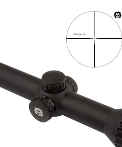 Das Ammersee 1-6×24 HD verfügt über ein Absehen 4 mit zentriertem Leuchtpunkt in der 2. Bildebene. Der Leuchtpunkt lässt sich in sechs Beleuchtungsstufen einstellen. Die robusten Verstelltürme aus Metall verfügen über eine 1/2 MOA-Verstellung und sind außerdem mit einer Nullstellfunktion ausgestattet, mit der die Türme nach dem Einstellen auf Null zurückgesetzt werden können. Für die offene Verwendung ist ein größerer Ersatzturm für die Höhenverstellung im Lieferumfang enthalten.