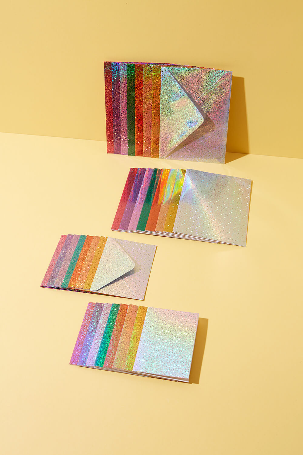 Diese Karten- und Umschlagsets scheinen aus der Regenbogengalaxie zu kommen und sie funkeln wie ein magischer Sternenhimmel.