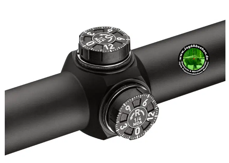 - Höhen- und Seitenverstellung in 1/4 MOA Schritten-fühl- und hörbar.