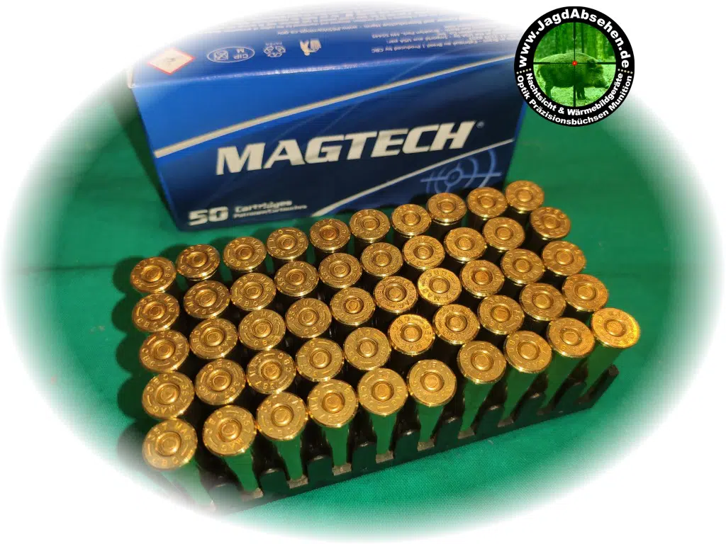 MAGTECH .357MAG FMJFL 158grs mit Boxerzündung „Sauenstopper“ Durch die abgeflachter Vollmantelgeschoßspitze ergibt sich eine extreme Mannstopwirkung – Zitat eines Kunden: „..großartige Wirkung! Einer aggressiven, angeschweißten Sau demontierte die Bohne beim ersten Schuss die Vorderachse!“
