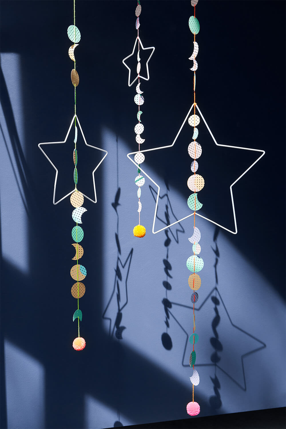 Wie wäre es mit einem Regenbogenschweif aus Krepppapier oder Garn, um den schlichten Stern zu einem hübschen Wandschmuck für das Kinderzimmer zu machen? Oder einen Traumfänger oder Mobile? Du hast bestimmt schon ganz viele Ideen – ich bin gespannt darauf sie zu sehen!