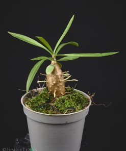 Bei Myrmephytum ‚longissimum‘ handelt es sich um ein sog. ‚Nomen Nudum‘, übersetzt „nackter Name“. Das heißt, dass diese Pflanze zwar einen botanischen Namen hat, aber es keine wissenschaftliche Beschreibung der Art gibt. Eine Pflanze mit ähnlichen Blättern, aber ohne dass der Caudex oder die Blüten bekannt waren, wurde als „Myrmedoma longissima“ auf einem Herbarbeleg vermerkt, aber die Identität dieser Pflanze wurde nie eindeutig geklärt und sie wurde auch nie als Art beschrieben. Mit einer Revision wurde die Gattung Myrmedoma in Myrmephytum integriert, woraus sich dann die neue Kombination „Myrmephytum longissimum“ ergibt. Dabei handelt es sich aber eben nicht um eine beschriebene Art! In der Revision der Gattung von Huxely & Jebb (1991) wird sie deshalb als „Myrmephytum species 1″ bezeichnet. Da sie aber inzwischen eher unter M. longissimum bekannt ist, bieten wir sie auch unter diesem (nackten) Namen an.