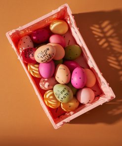 Die Eier werden in einem Arbeitsgang mit dem Farbpulver (Rot, Gelb, Grün, Orange oder Pink) in einem Topf gekocht und zum Vorschein kommen satte kräftige Farbtöne.