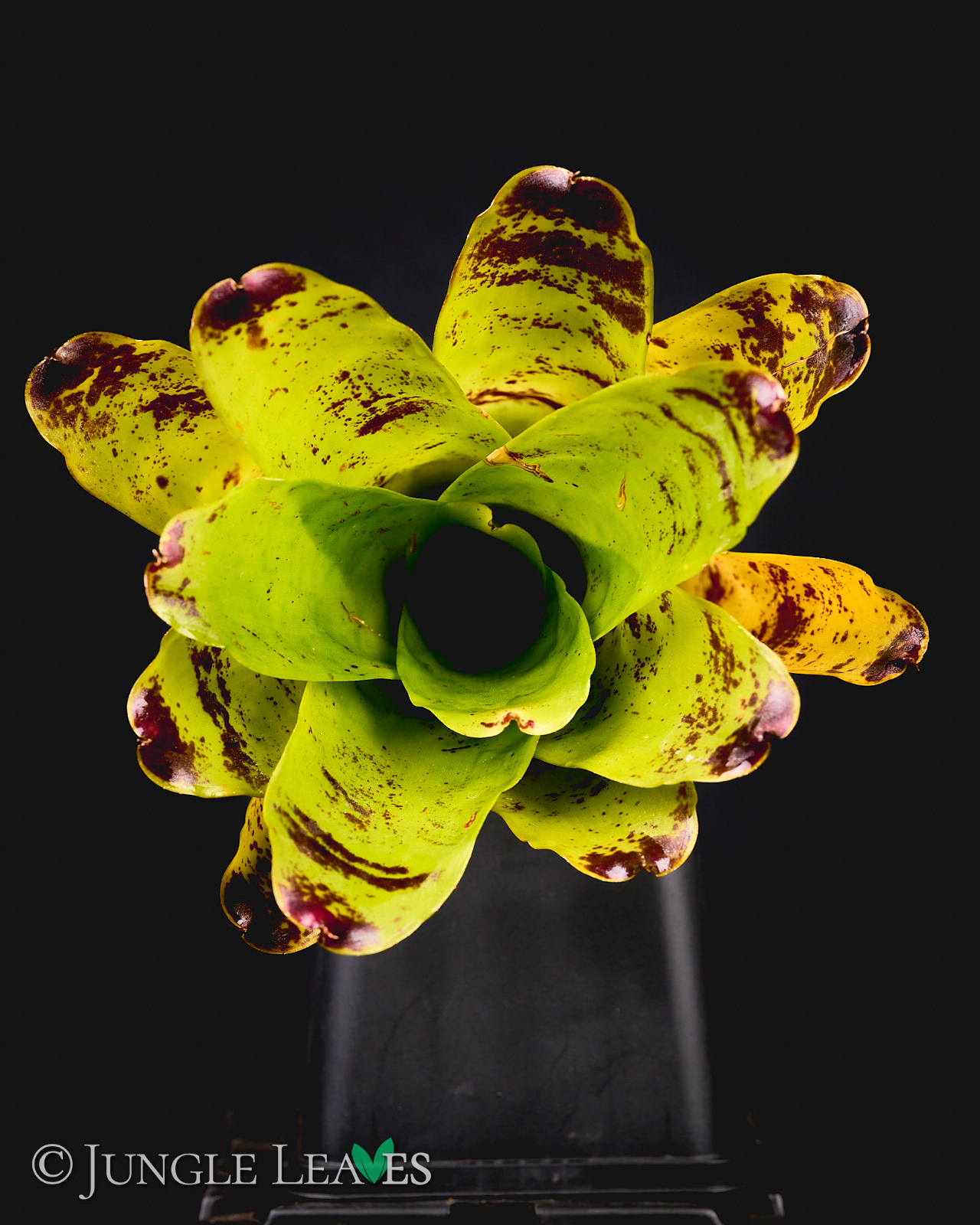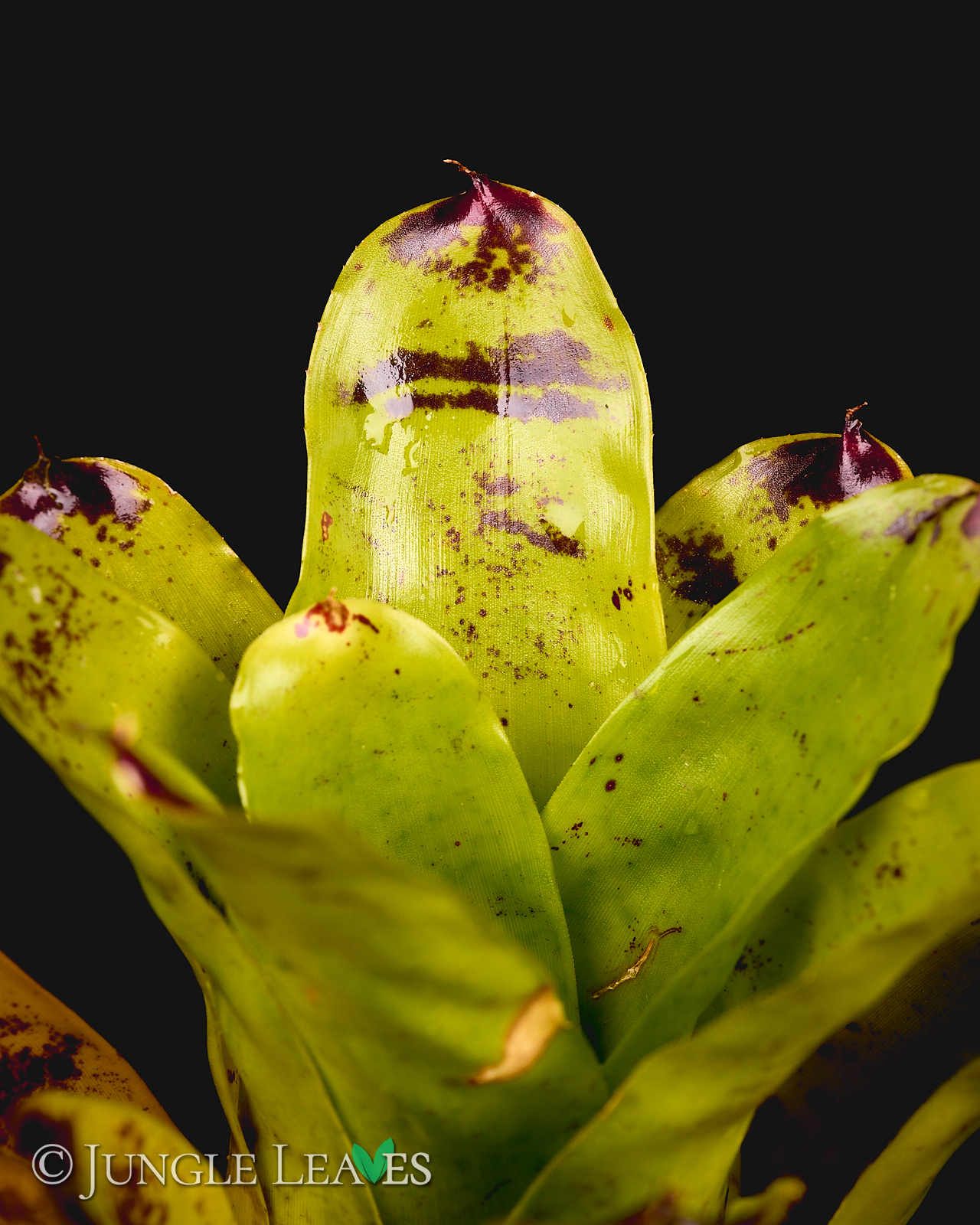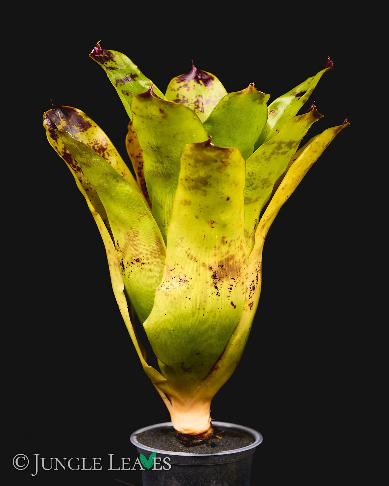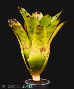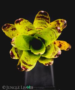 Neoregelia kautskyi erreicht einen Durchmesser von maximal 30cm bleibt meistens aber bei etwa 20cm. Bei genügend Licht entwickelt sie eine auffällige hellgrüne bis gelbe Farbe und erinnert damit einige bekannte „Lime“ oder „Neon“ Kultivare anderer Pflanzen. Das intensive hellgrün leuchtet schon fast! Bei weniger Licht bleibt sie eher normal grün gefärbt. Sie entwickelt einige rot/lila Punkte, vor allem an der Spitze der Blätter. Die Kombination aus dunkelroten Flecken und gelben Blättern ist einzigartig bei Bromelien.