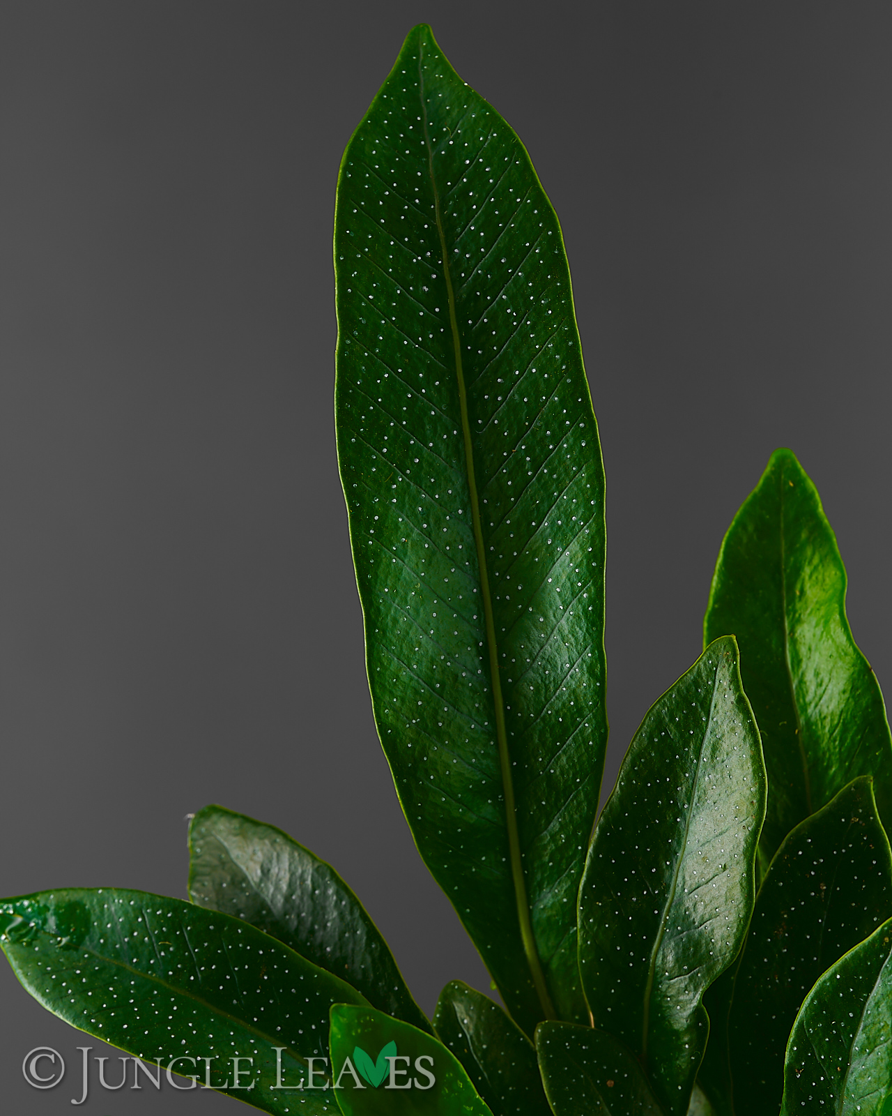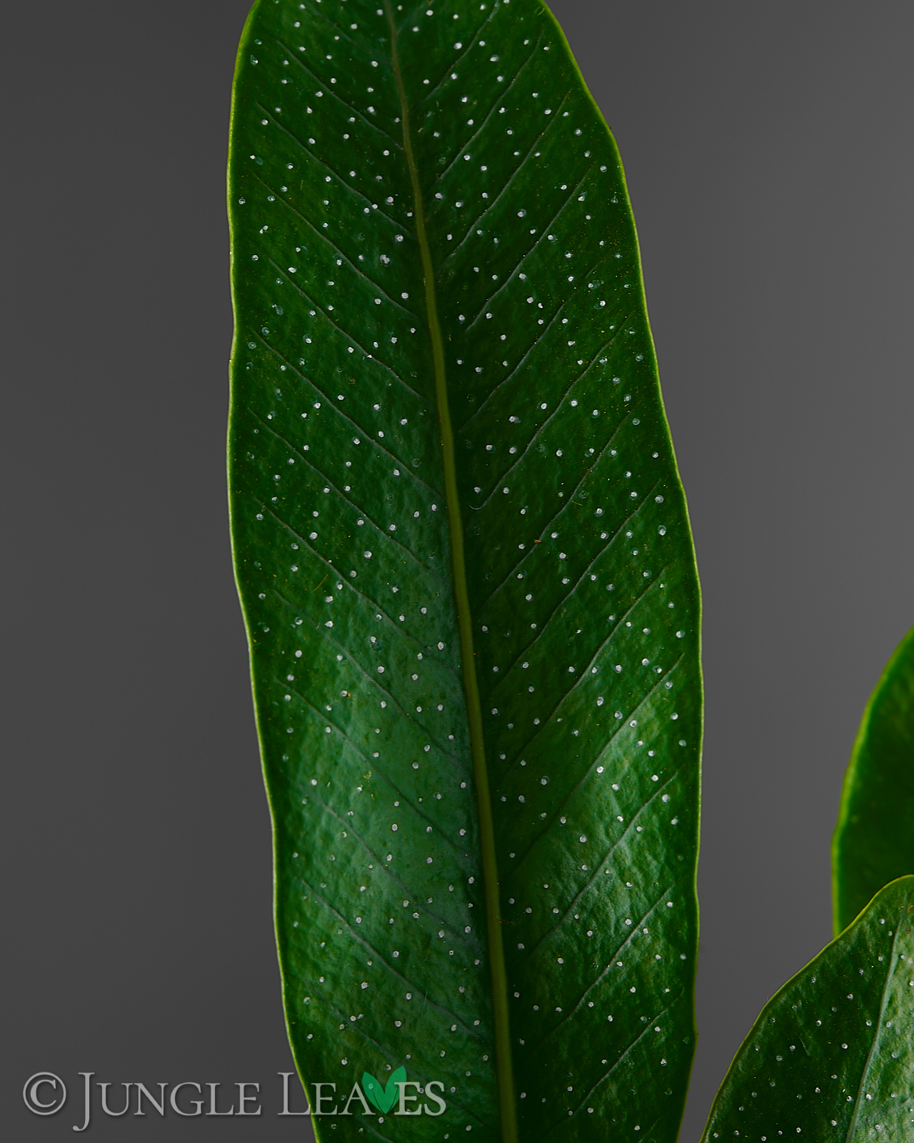 Dieser groß werdende Farn kommt aus Zentralamerika und wächst dort als Epiphyt auf größeren Bäumen, selten auch auf dem Waldboden. Die Blätter sind sehr steif und können bis zu 80 cm lang und 5cm breit werden. Ihre Oberseite ist leicht gerippt, und mit zahlreichen kleinen, weißen Punkten versehen. Auf der Unterseite sind (bei großen Pflanzen) viele Sori in regelmäßigen Reihen angeordnet. Die Blätter wachsen aus einem schwarzen, dichten Rhizom welches mit der Zeit recht groß werden kann. Sein Wachstum ist eher langsam.