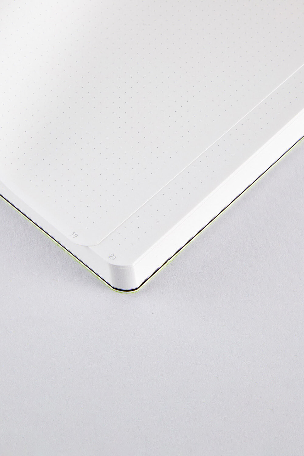 - Inhalt: 176 Seiten, 120 g Premium-Papier, 2,5 mm Punkt-Raster Grau, Fadenheftung, perfektes Aufschlagverhalten