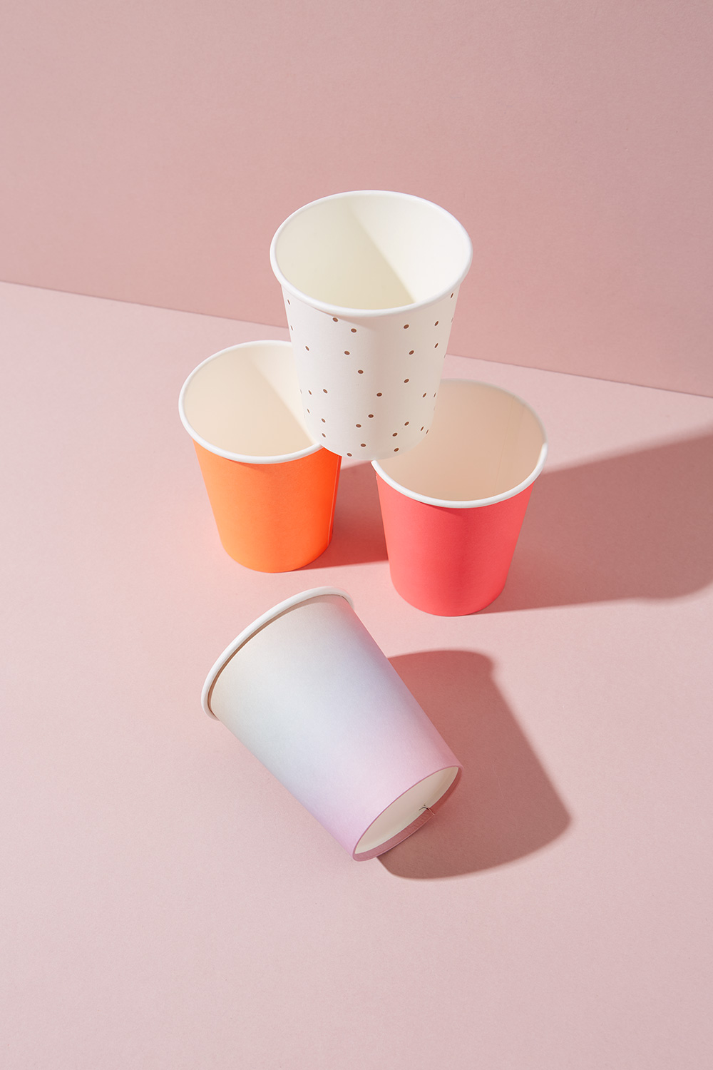Die Becher sind zusammen mit diesen Partytellern und diesen Servietten ein Traumteam für deine Tischdeko zum Kindergeburtstag oder anderen Festen.