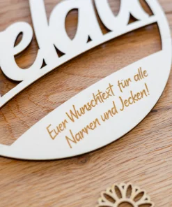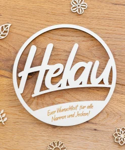 Für alle Jecken die für Karneval noch eine schöne Dekoration suchen haben wir unser Holzschild „Helau“ designt. Das Schild kann per Laser mit eurem Wunschtext graviert werden und bietet sich besonders an, um es an eure Wohnungstür zu hängen! Das Holzschild „Helau“ ist nicht nur ein echter Hingucker, sondern auch eine tolle Möglichkeit, eure Vorfreude auf die närrische Zeit zu zeigen. Mit seiner natürlichen Optik und der hochwertigen Verarbeitung bringt es Karnevalsstimmung in jedes Zuhause und alle Räumlichkeiten.